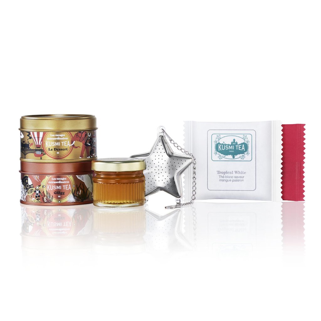 - Součástí sady jsou také dvě miniaturní kovové dózy se sypaným čajem, konkrétně GLOGG (25 g) a LE DESSERT (20 g), ideální pro slavnostní chvíle.