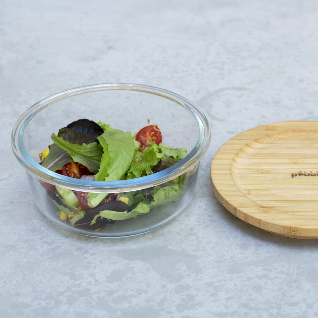 - skleněná dóza s bambusovým víkem pro uchovávání potravin doma i na cestách