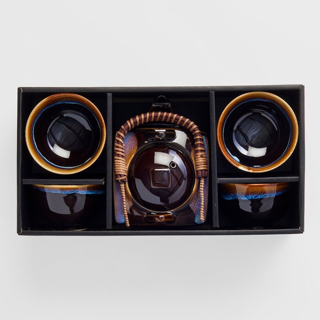 Čajová souprava TENMOKKU, sada 5 ks, černá, keramika, MIJ