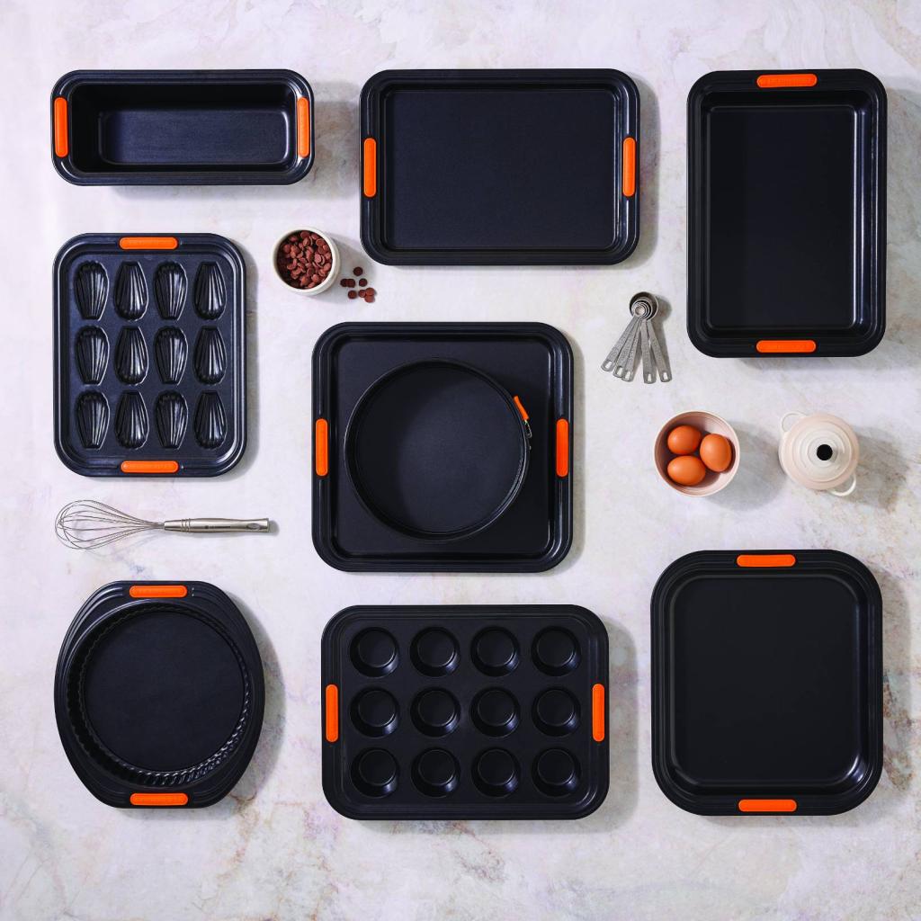 - Materiál tvoří karbonová ocel s nepřilnavým povlakem, kombinace podporuje pevnost, odolnost při běžném používání a přináší komfort při každodenním pečení doma.