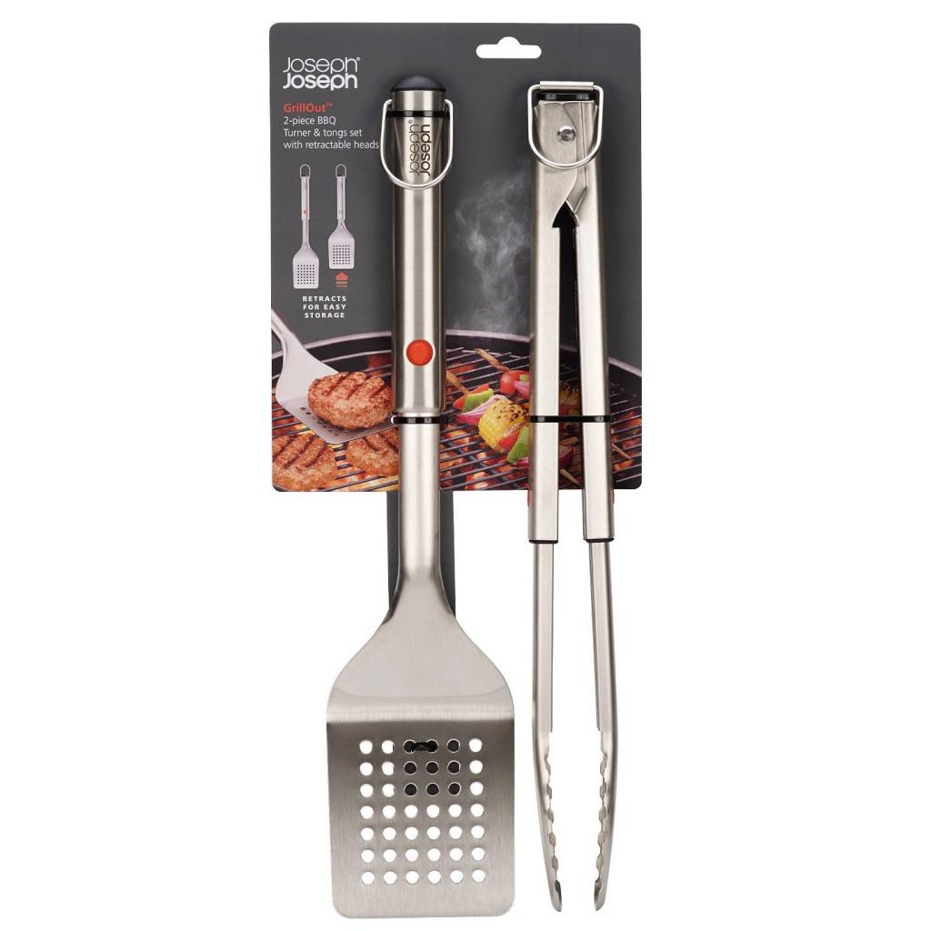 - Grilovací sada Joseph Joseph GRILLOUT obsahuje kleště a obracečku z nerezové oceli pro přesné obracení, uchopení a servírování pokrmů při venkovním grilování.