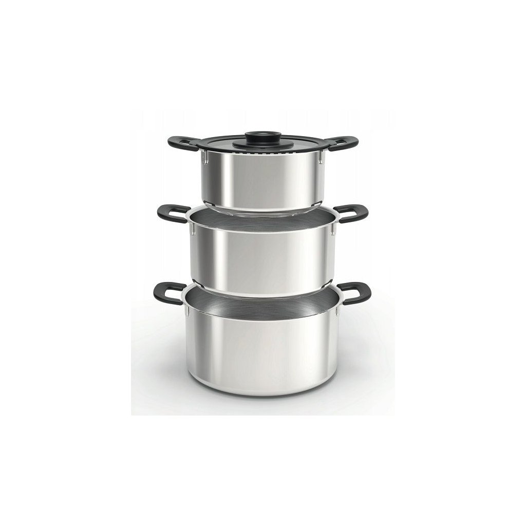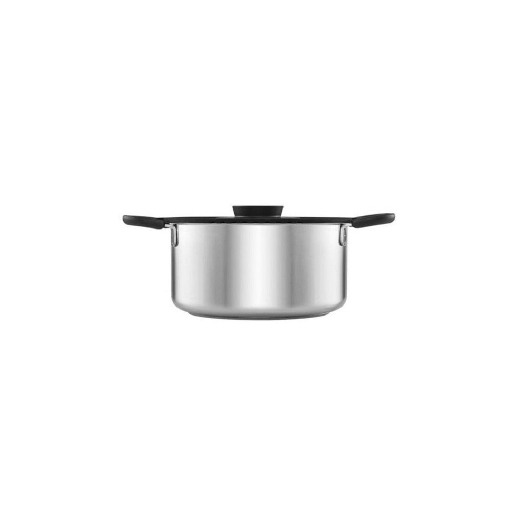 Vnější povrch hrnce je hladký a zajišťuje tak maximální ochranu varné desky před poškrábáním. Plochá skleněná poklice z tvrzeného skla se silikonovým okrajem nabízí dvě možnosti slévání vody a snadné sledování připravovaných pokrmů, stejně jako kontrolu páry a varu. Hrnec je s ostatním nádobím Functional Form snadno stohovatelný a šetří tak úložný prostor. Bakelitové držadlo zůstává během vaření příjemně chladné a zajišťuje tak bezpečné uchopení.