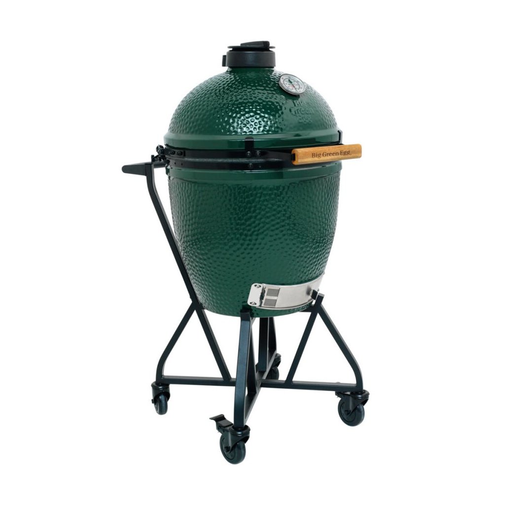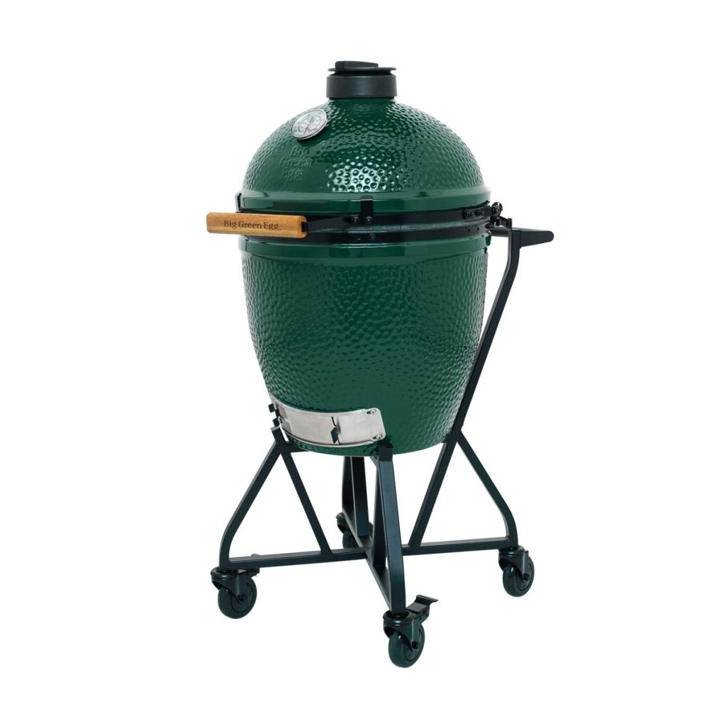Gril na dřevěné uhlí L 46 cm, + intEGGrovaný pojízdný stojan s držadlem, zelená, Big Green Egg