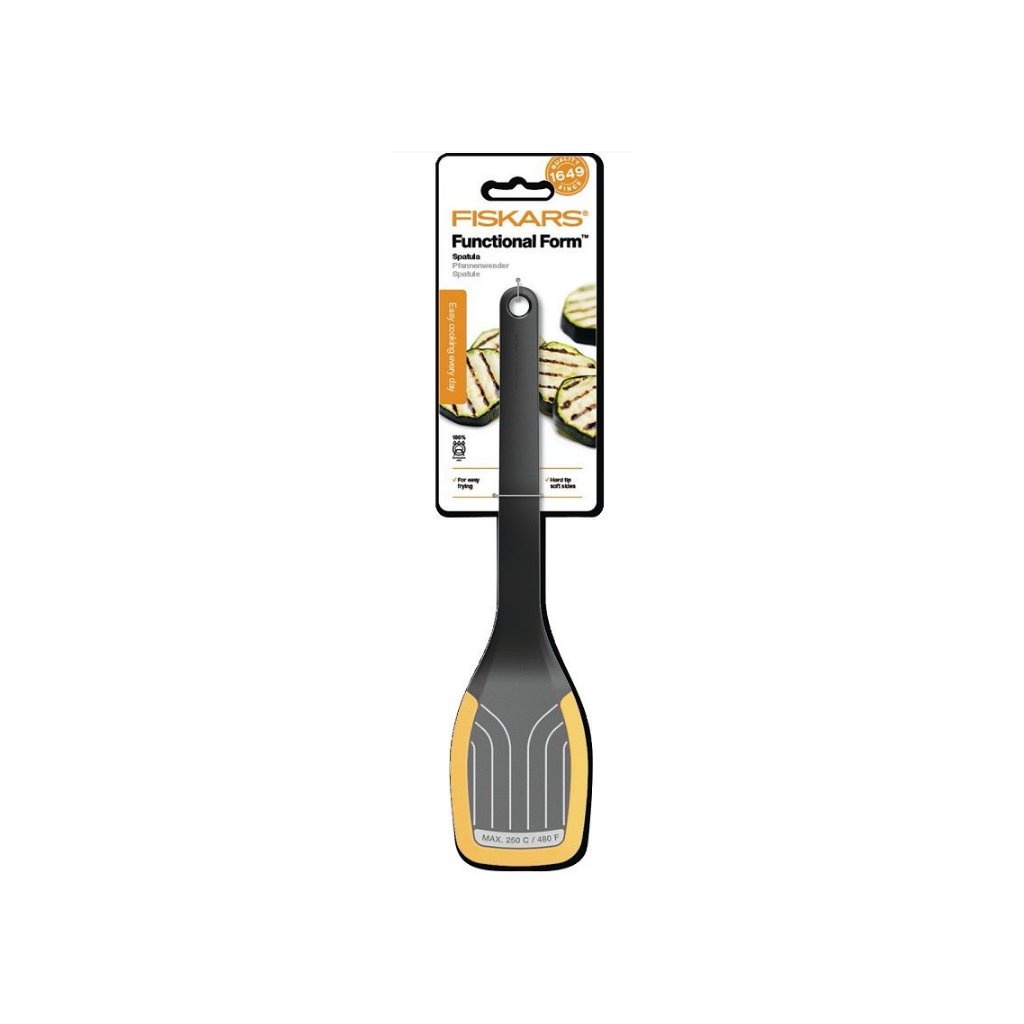 Kuchyňská lopatka je vyrobena z velmi kvalitního plastu s pružnými silikonovými okraji, které snadno vytřou každé nádobí. Ohebný silikonový okraj přilehne k pánvičkám a hrncům a bez poškrábání povrchu vytře zbytky jídla. Na konci rukojeti je praktický otvor na zavěšení. Vhodná pro praváky i leváky. Lopatka je ideální pro snadné smažení a přípravu palačinek a omelet.