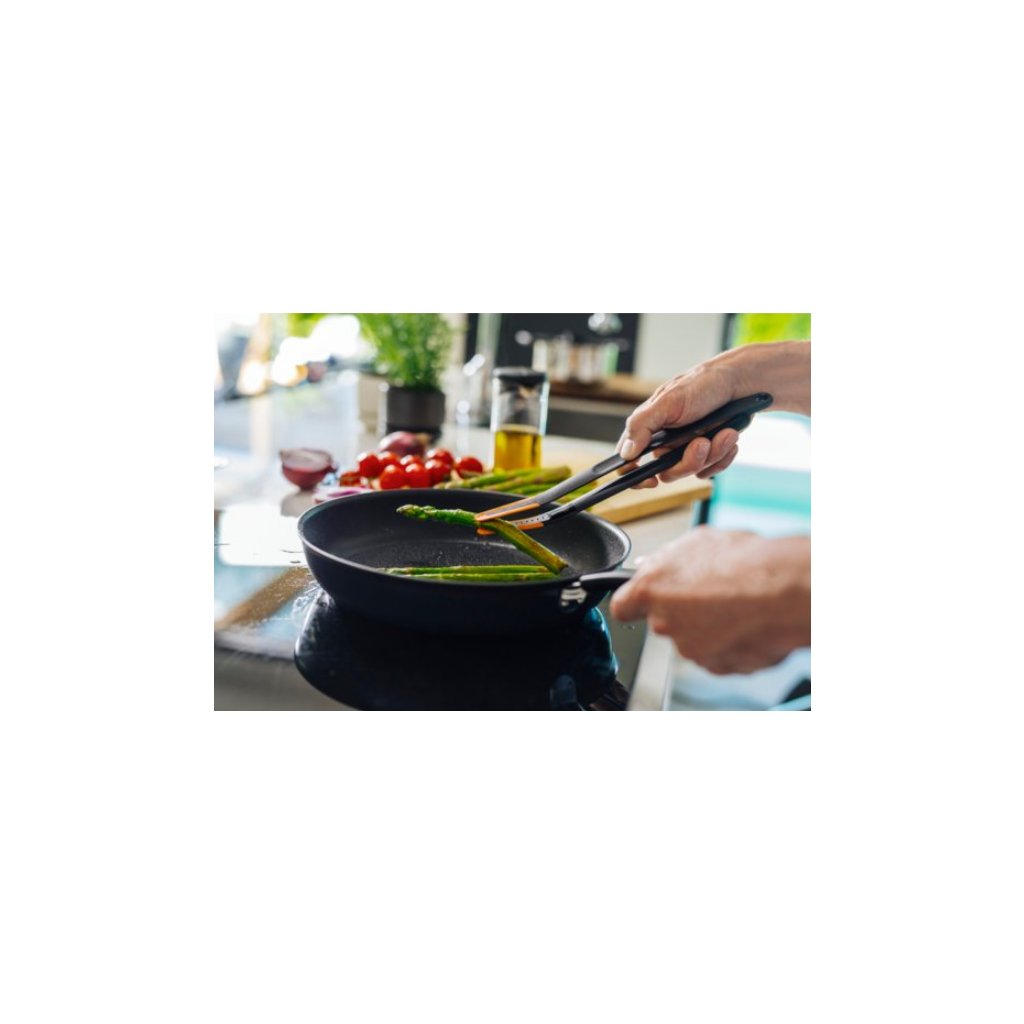 Praktické moderní kleště mají silikonové okraje pro přesné uchopení potravin. Špičaté konce pro perfektní úchop. Speciální tvar pro snadné použití i na pánvi. Vhodné pro praváky i leváky. Na konci rukojeti je praktický otvor na zavěšení. Odolný design zamezuje přetočení kleští. Lze mýt v myčce na nádobí.