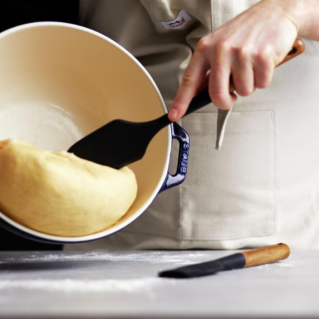 - pracovní část z černého matného silikonu si perfektně rozumí s litinovým nádobím Staub