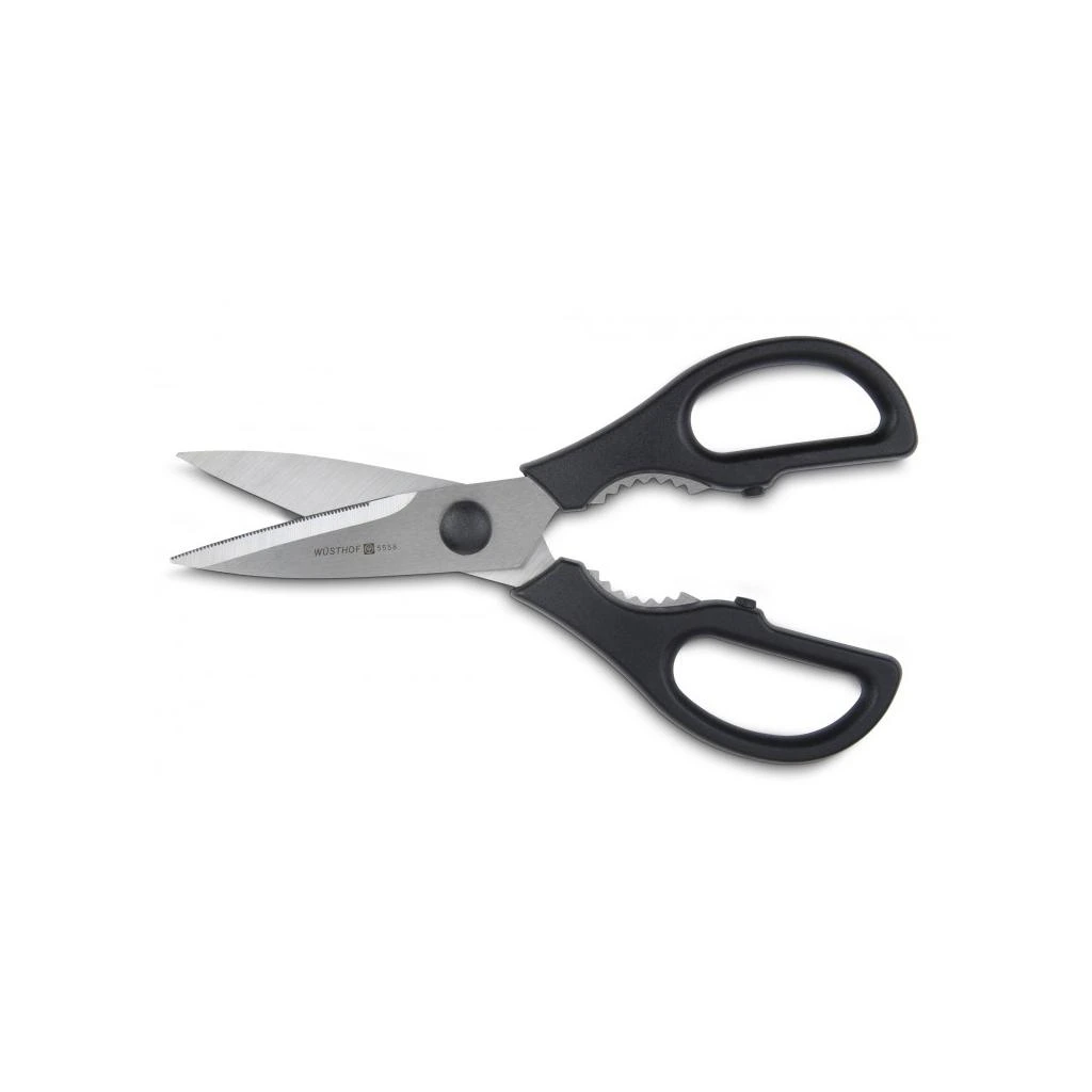 Kuchyňské nůžky jsou nepostradatelným pomocníkem v každé domácnosti. Masivní pevné nůžky umožňují porcování ryb a drůbeže, stříhání bylin nebo zeleniny, i klasické použití na papír, provázky či fólie. Nůžky mají mechanismus pro snadné čištění a jsou vyrobeny z nerezové oceli.