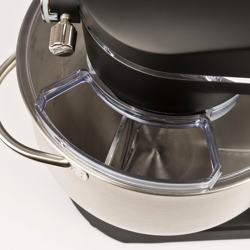- víko z průhledného plastu umožňuje kontrolu nad přípravou těsta a chrání kuchyň proti nechtěnému nepořádku