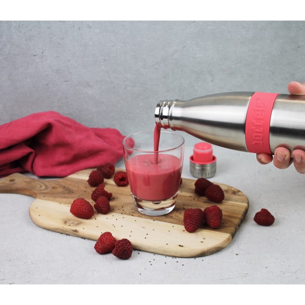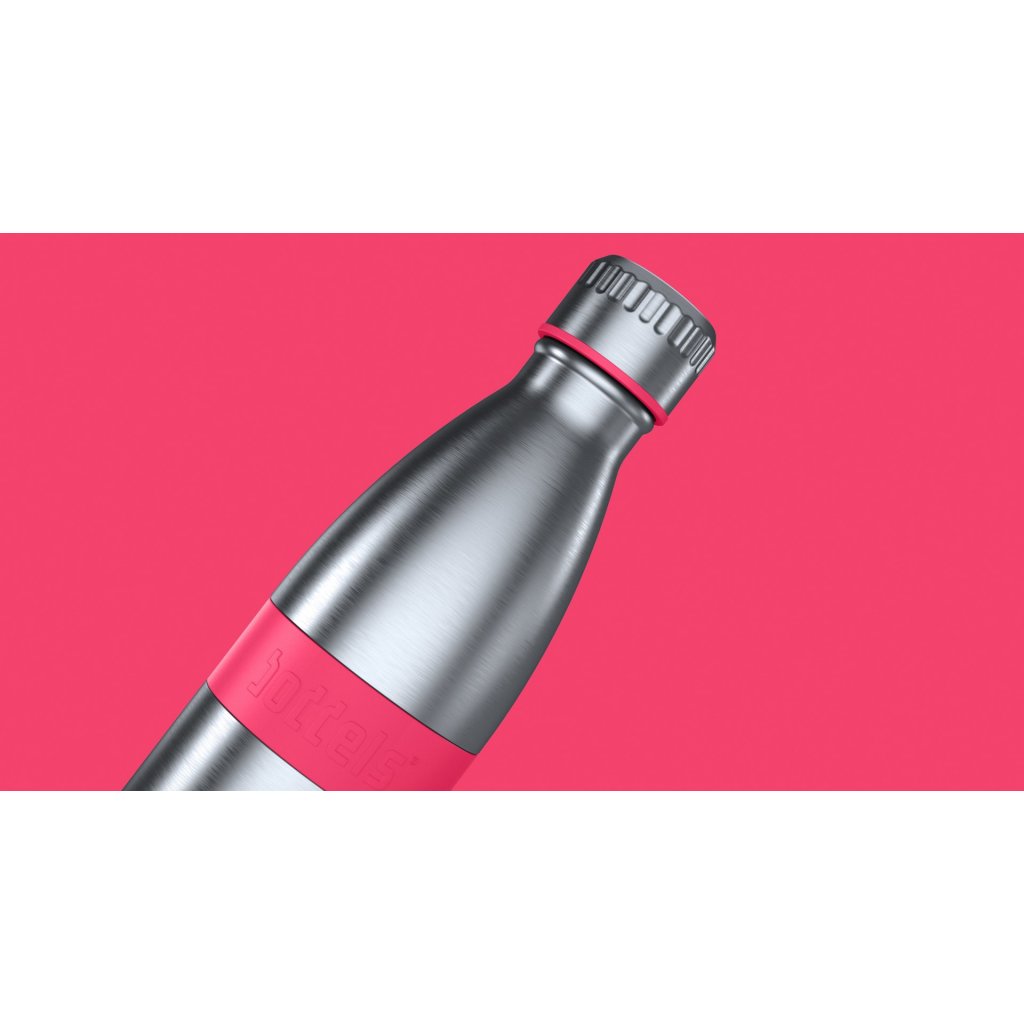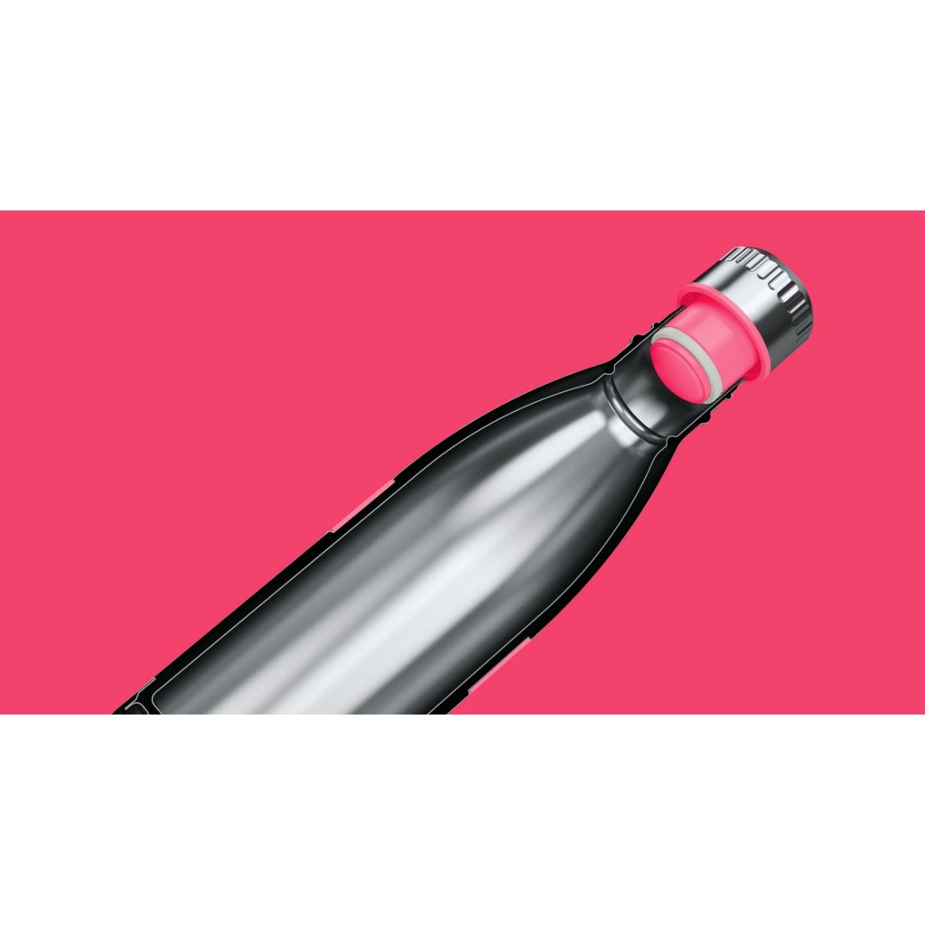 Láhev na pití ze série TWEE značky Boddels je vyrobena z nerezové, dvouplášťové oceli. Uzávěr je praktický, šroubovací a 100% nepropustný. Láhev udrží nápoj chladný po dobu 24 hodin, teplý po dobu 12 hodin. Lahev je vhodná i na sycené nápoje, kávu, čaj, džusy. Po obvodu je barevný, silikonový protiskluzový kroužek.