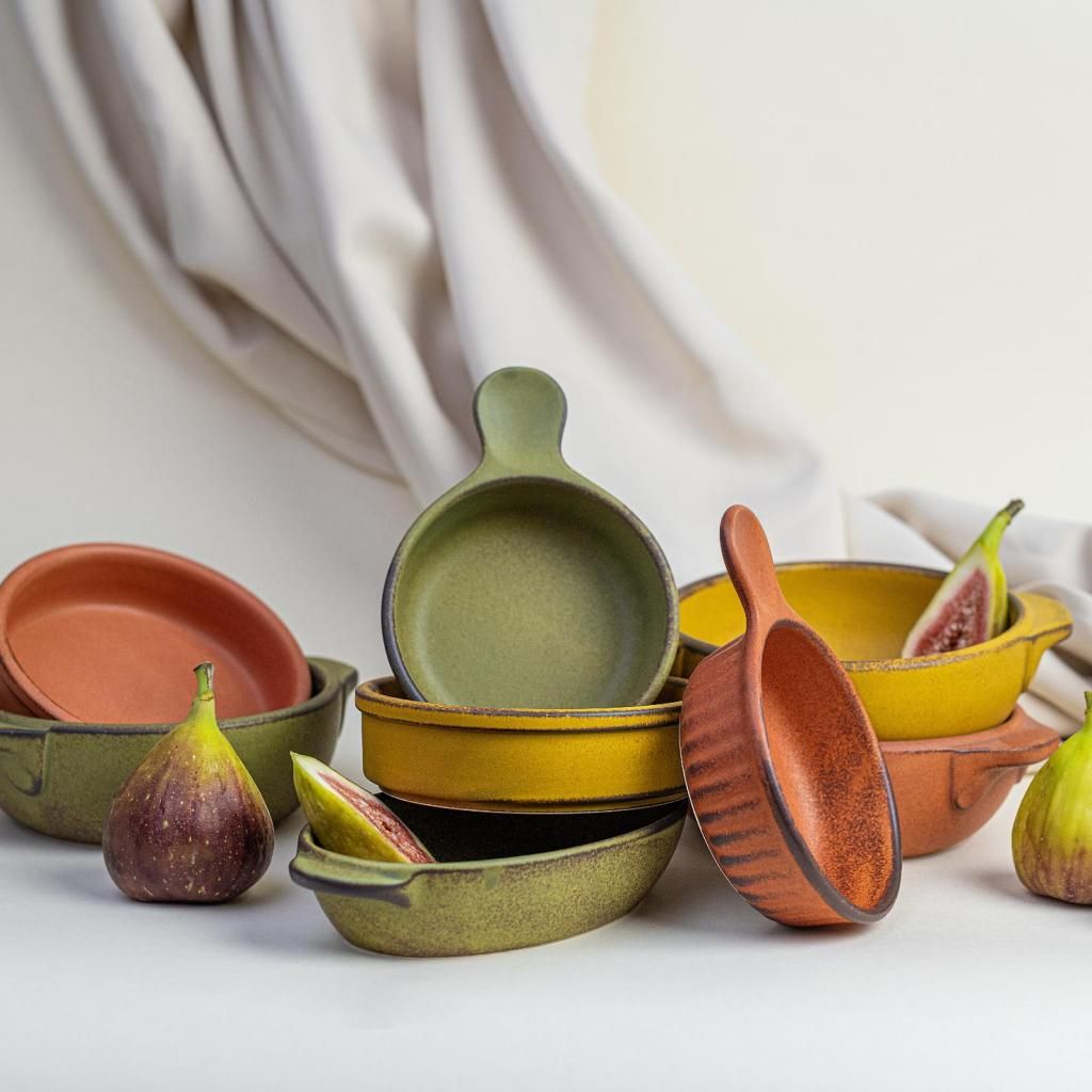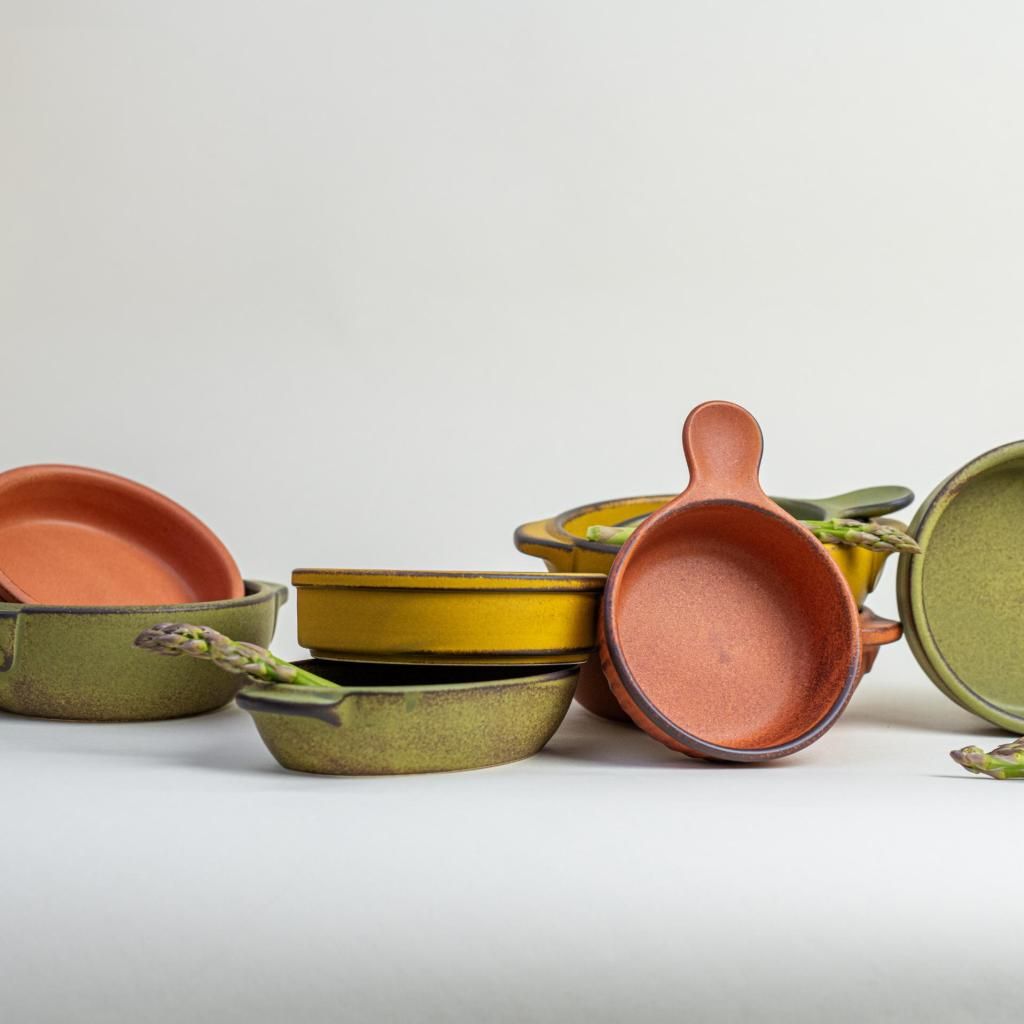 - Zelená glazura s jemným hnědým tónem připomíná přírodní keramiku a dobře zapadne do rustikální i moderní kuchyně.