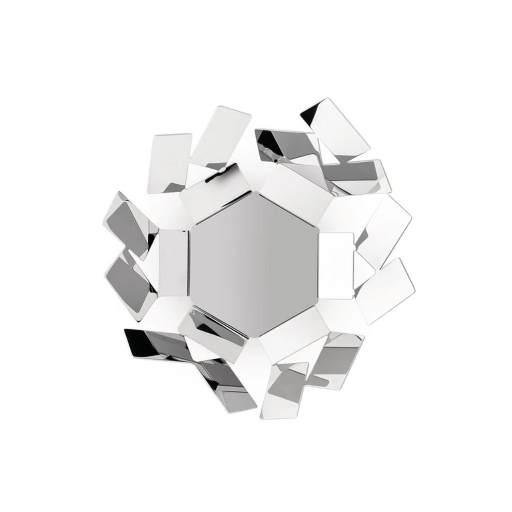 Mísa na ovoce z designové kolekce La Stanza dello Scirocco, navržená sicilským návrhářem Mariem Timarchim. Kolekce je inspirována magickou atmosférou starých sicilských domů, v jejichž pokojích chybí okna a zpravidla mají pouze jedno světlo. Jejich obyvatelé čekají, až opadne velké horko a suchý jižní vítr zvaný Scirocco, který s sebou přináší oblaka písečného prachu až ze Sahary. Kolekce svými malými úlomky různých velikostí a geometrickou nepravidelností nabízí poutavou nerovnováhu světla a stínu.