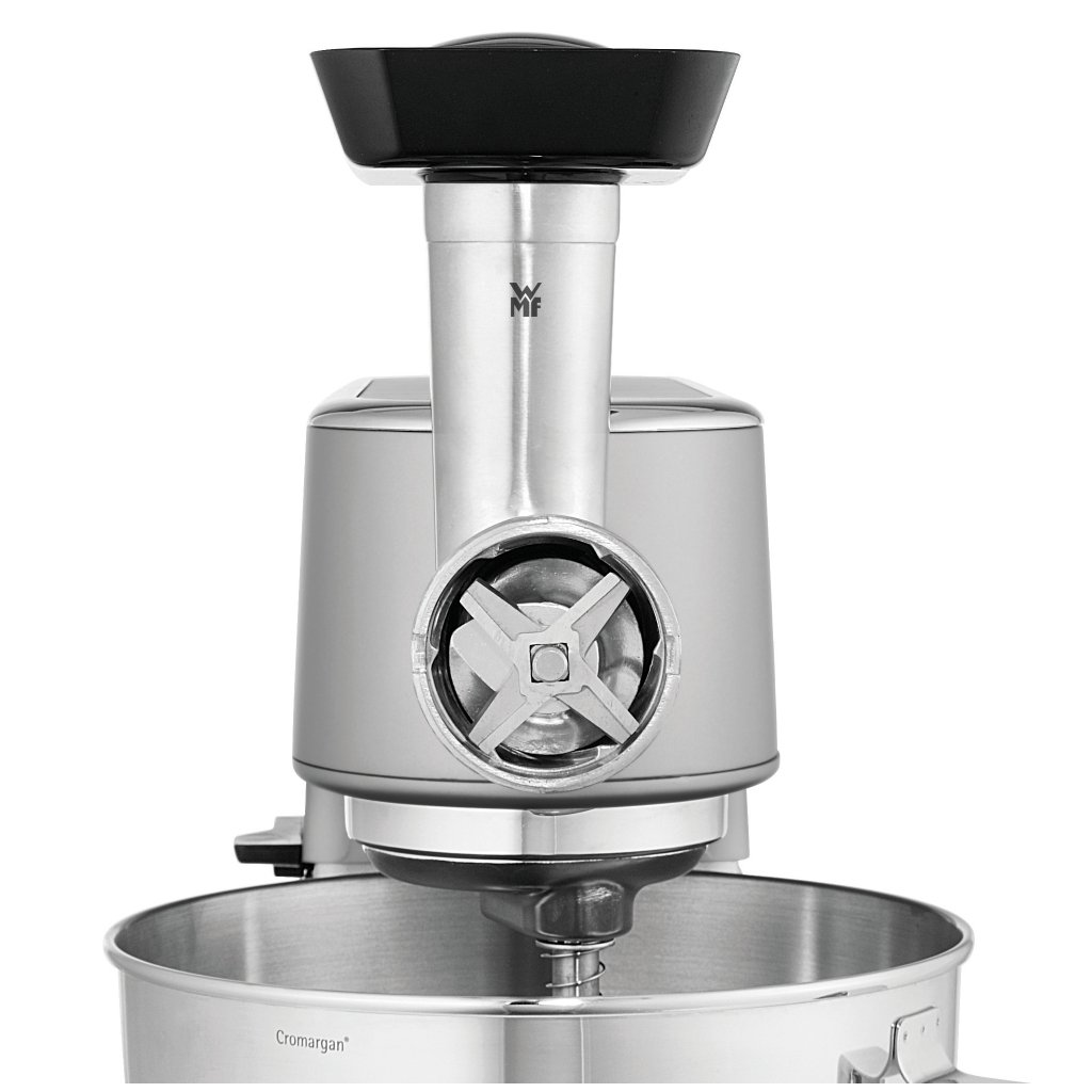 Mlýnek na maso německé značky WMF je volitelným příslušenstvím ke kuchyňskému robotu Profi Plus a KITCHENminis®. Vyroben je z vysoce kvalitního odlitku hliníku. Vnitřní nůž se čtyřmi čepelemi z ušlechtilé nerezové oceli Cromargan® byl vyroben metodou Perfect Cut, je tedy velmi ostrý.
