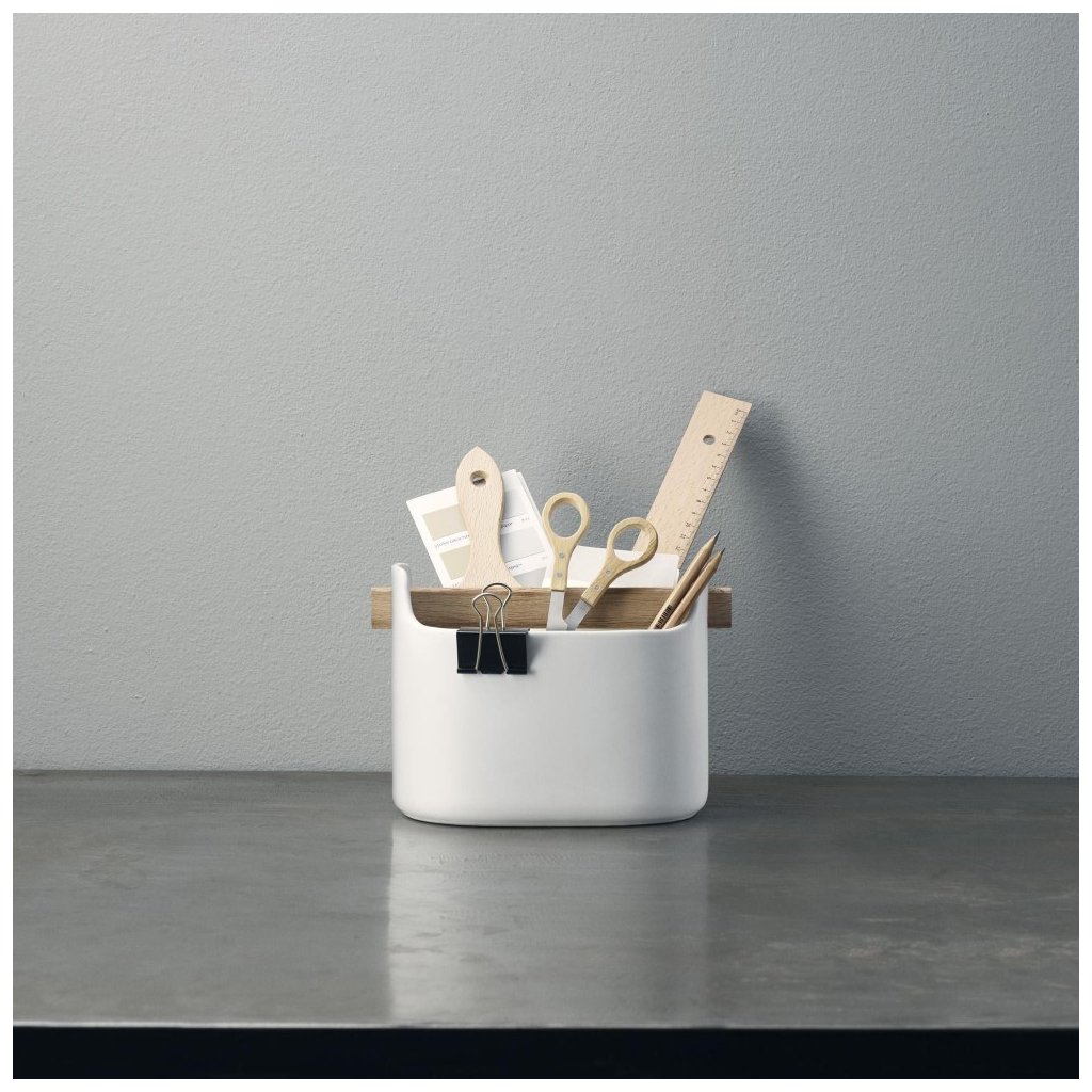 Keramický multifunkční box Eva Solo kombinuje trendy bílou barvu s rukojetí ze světlého dubového dřeva, která dodává celku hřejivý tón. Využívá jednoduchého, výrazného designu s vysokým stupněm funkčnosti. Doplněk do domácnosti, který byl navržen tak, aby nezestárl.
