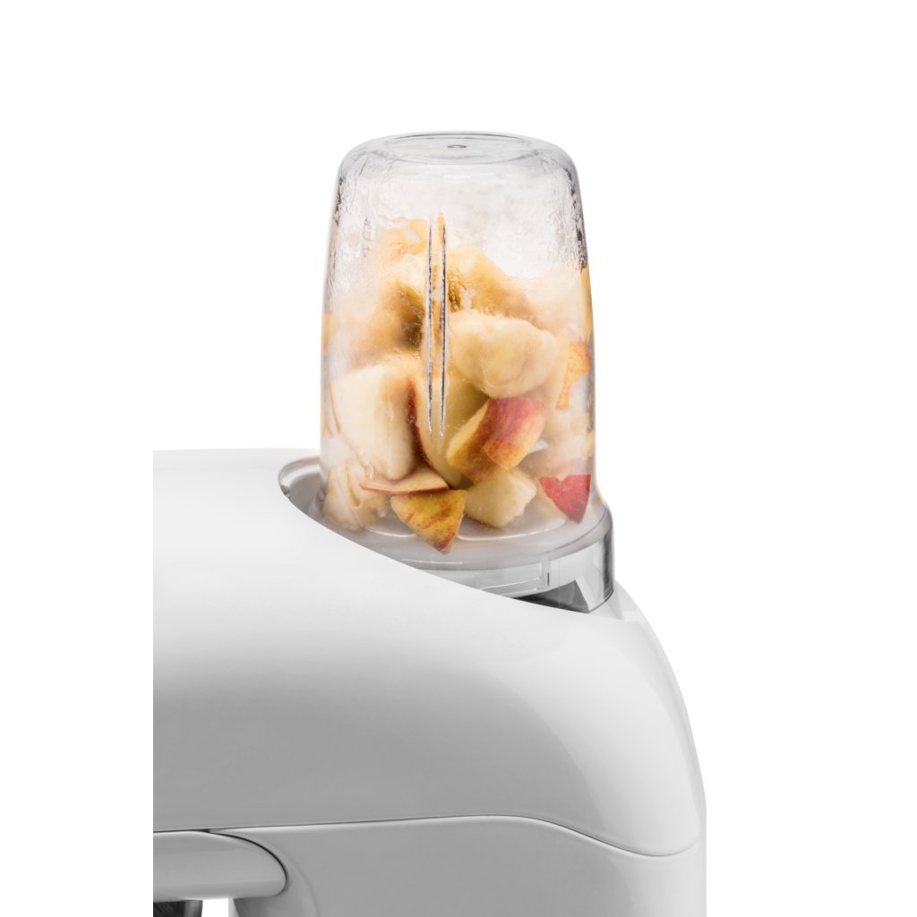 Jeho objem 420 ml se může zdát málo, ale naopak je jeho výhodou. V porovnání s velkými mixéry totiž menší objem zajistí rychlejší a jemnější zpracování ingrediencí. Pro ten nejlepší výsledek navíc disponuje čtyřramenným, speciálně tvarovaným nerezovým nožem.