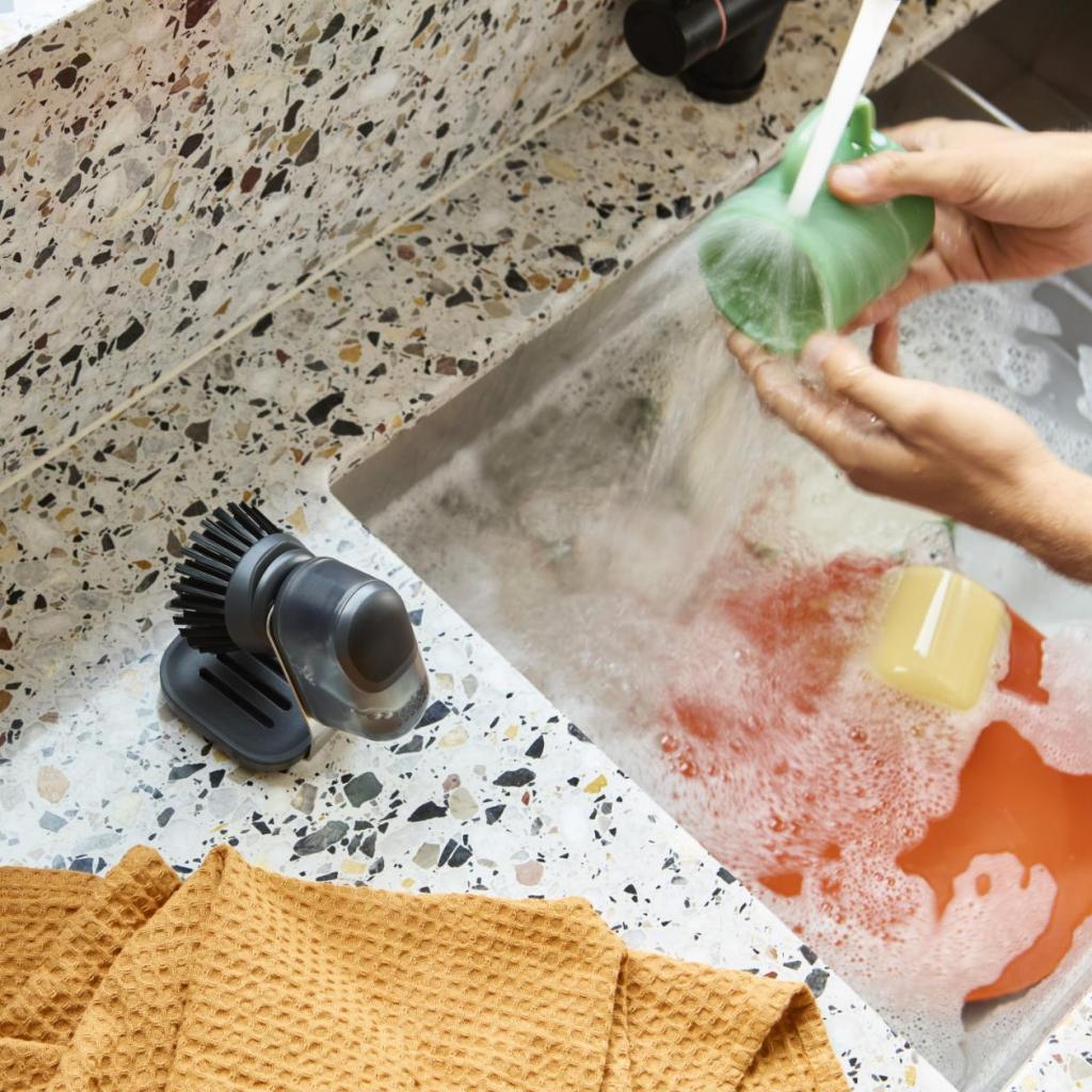 - Odolné štětiny jsou navrženy tak, aby si dlouhodobě zachovaly svůj tvar i při pravidelném mytí nádobí.