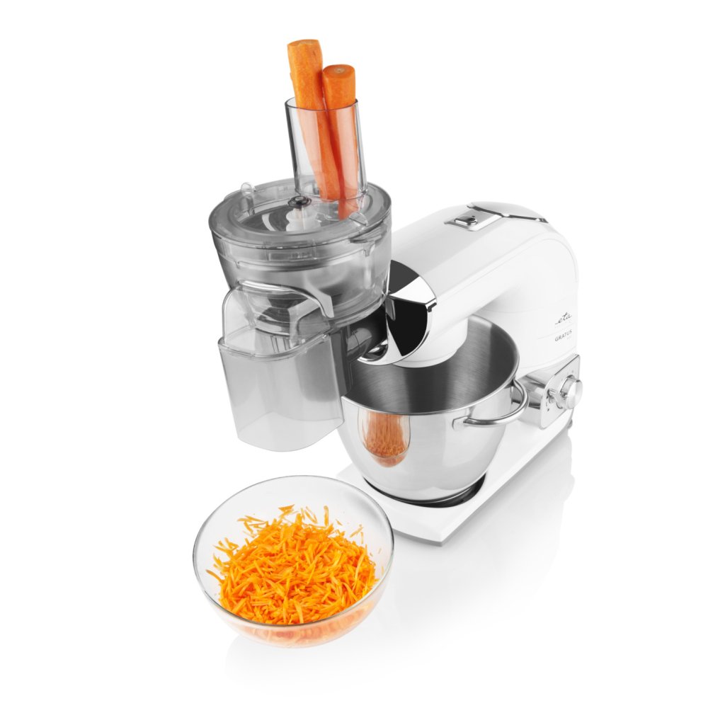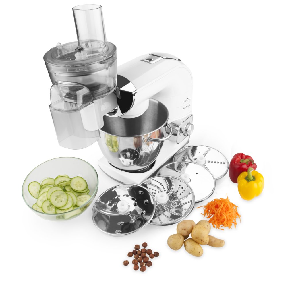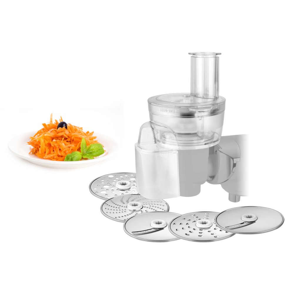 Nástavec disponuje 5 celonerezovými diskovými struhadly, které si snadno poradí se zpracováním mnoha surovin: