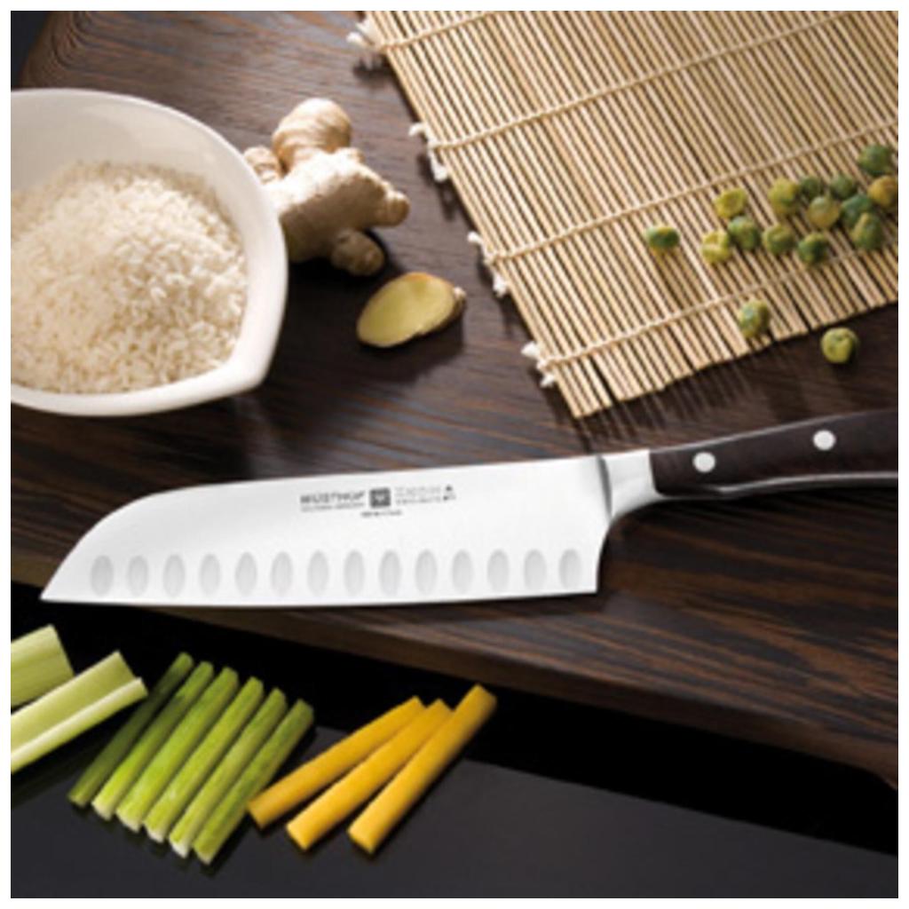 Nůž Santoku s výbrusem Classic Ikon patří mezi nože asijského typu. Pyšní se širokou a především ostrou čepelí. Tohoto všeuměla z asijské kuchyně lze použít hned třemi způsoby: pro přípravu masa, ryb i zeleniny.