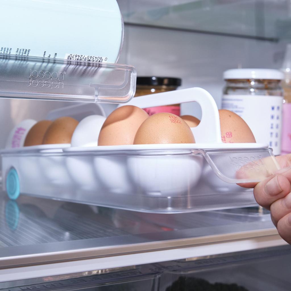- Organizér na vejce Joseph Joseph FRIDGESTORE je praktický doplněk do lednice, který umožňuje přehledné uložení vajec a jejich pohodlné vyjmutí při každodenním vaření.