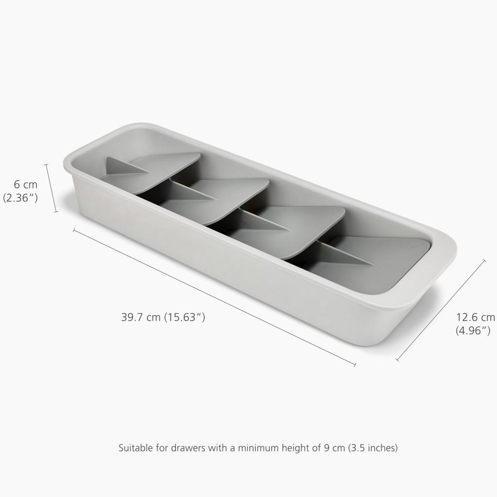- Kompaktní organizér na příbory Joseph Joseph DRAWERSTORE pomáhá přehledně uspořádat příbory i v menších kuchyňských zásuvkách.