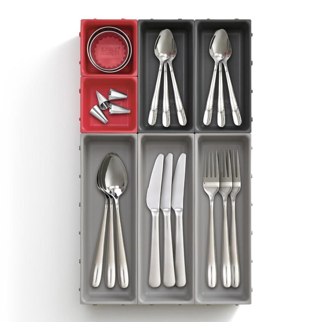 Organizér na příbory DUO BLOX 851675, sada 7 ks, variabilní, šedá, plast, Joseph Joseph