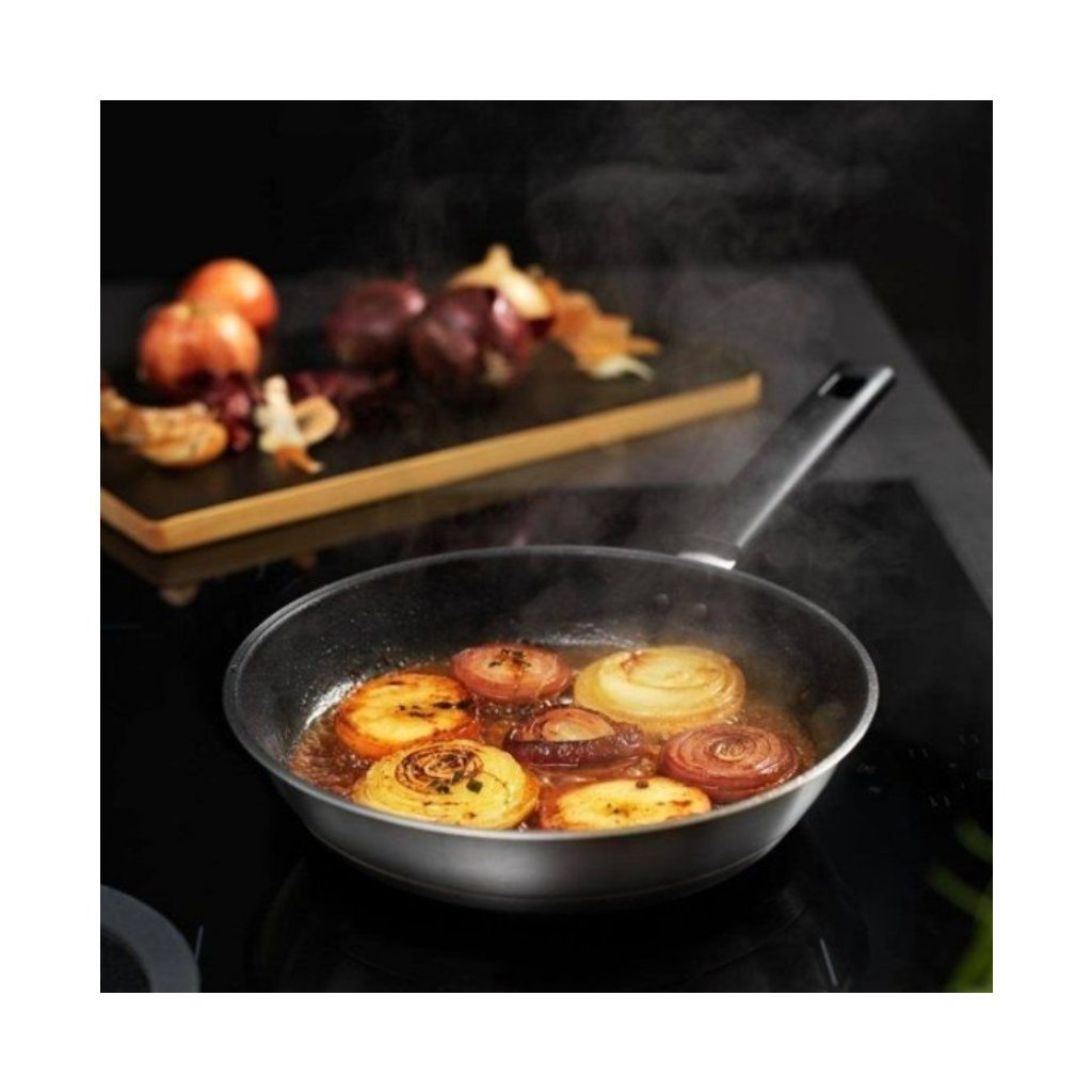 Extrémně odolná pánvička vyrobená z kvalitní nerezové oceli pro náročné každodenní vaření. Uvnitř pánve je vysoce odolný povrch Hardtec Superior. Její třívrstvé dno rovnoměrně rozvádí teplo. Má bakelitové držadlo, které zůstává neustále studené. Vhodná pro plynové, elektrické, sklokeramické desky i indukční desky. Pánev lze mít v myčce.