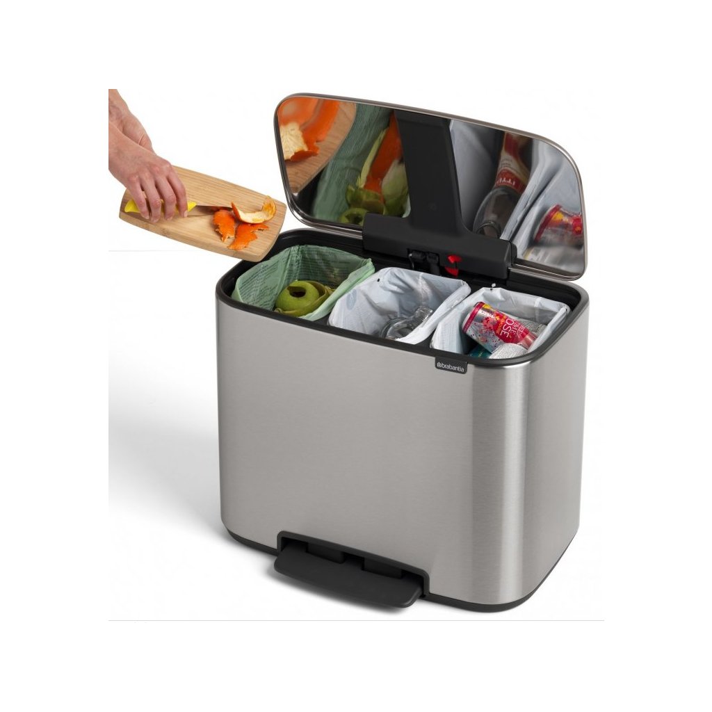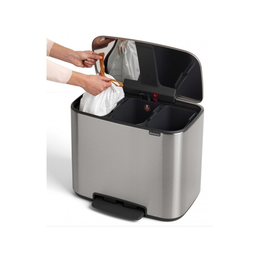 Pedálový odpadkový koš BO 3 x 11 l, matná ocelová, Brabantia