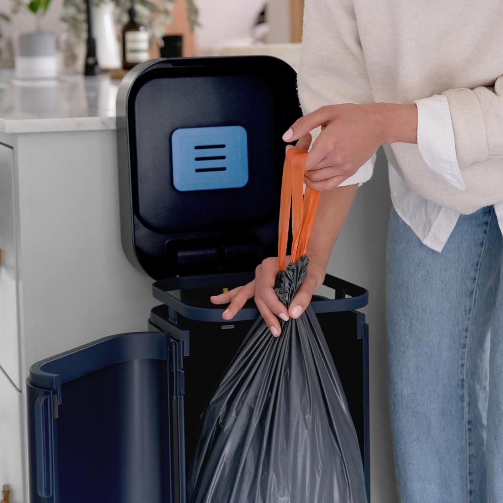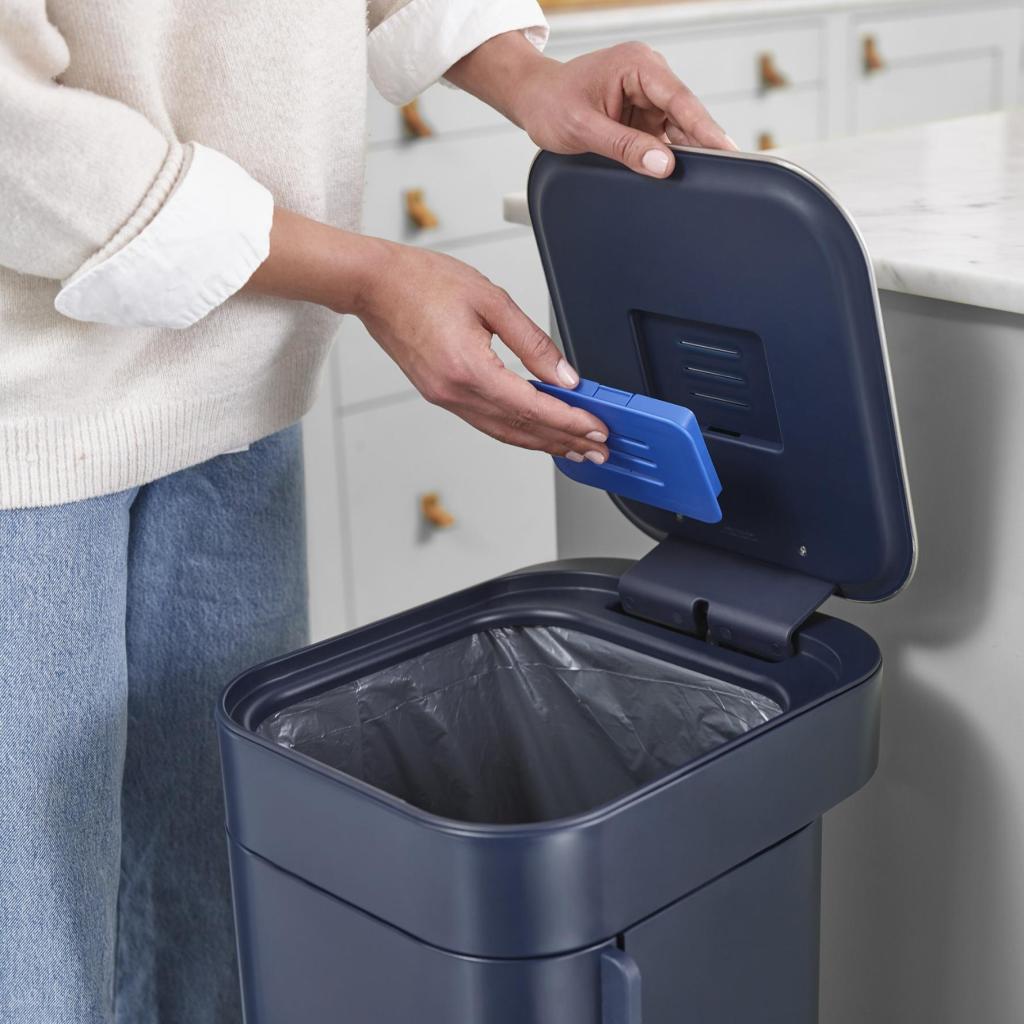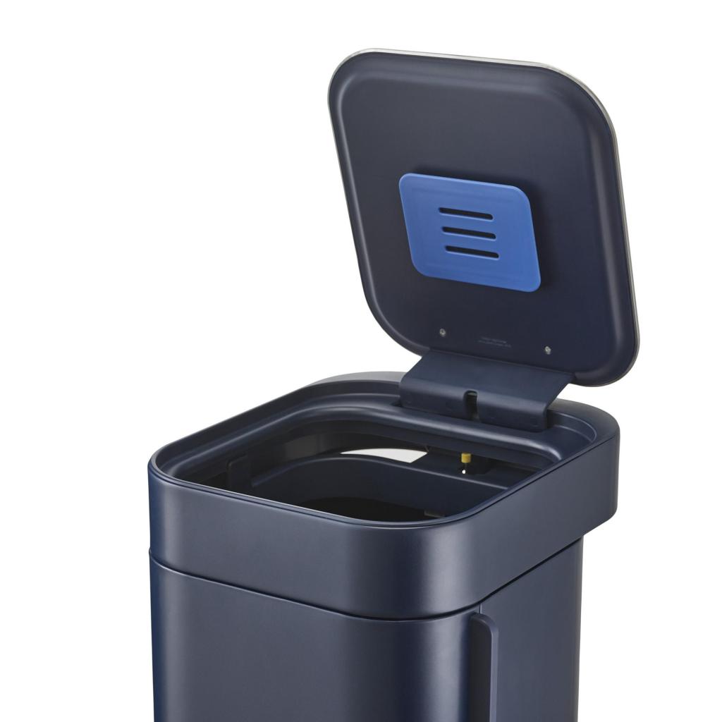 - Integrovaný uhlíkový filtr pomáhá omezovat nepříjemné pachy z odpadu, takže koš může zůstat déle plný bez nutnosti okamžitého vynesení.