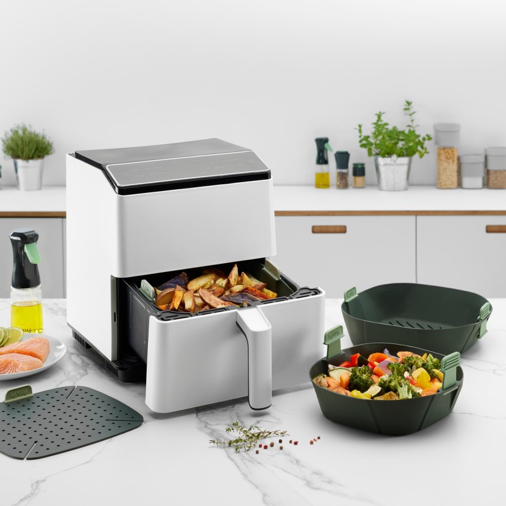 - silikonová podložka do horkovzdušné fritézy Lékué pomáhá dosáhnout dokonale křupavého výsledku a zároveň chrání vnitřek fritézy před znečištěním