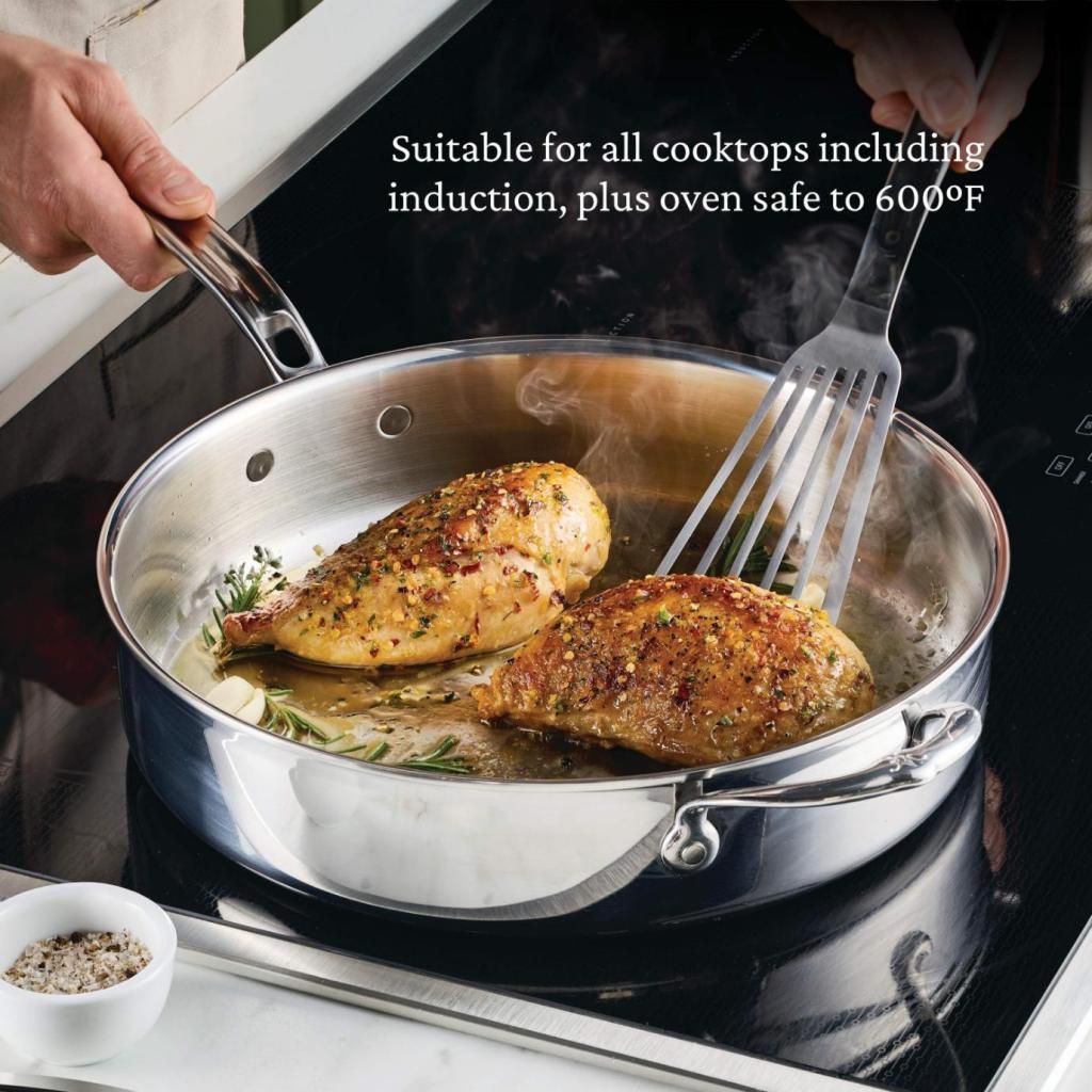 - Třívrstvá konstrukce z nerezové oceli s hliníkovým jádrem ProCore™ zajišťuje o 35 % vyšší tepelnou vodivost a rychlou reakci na změny teploty.