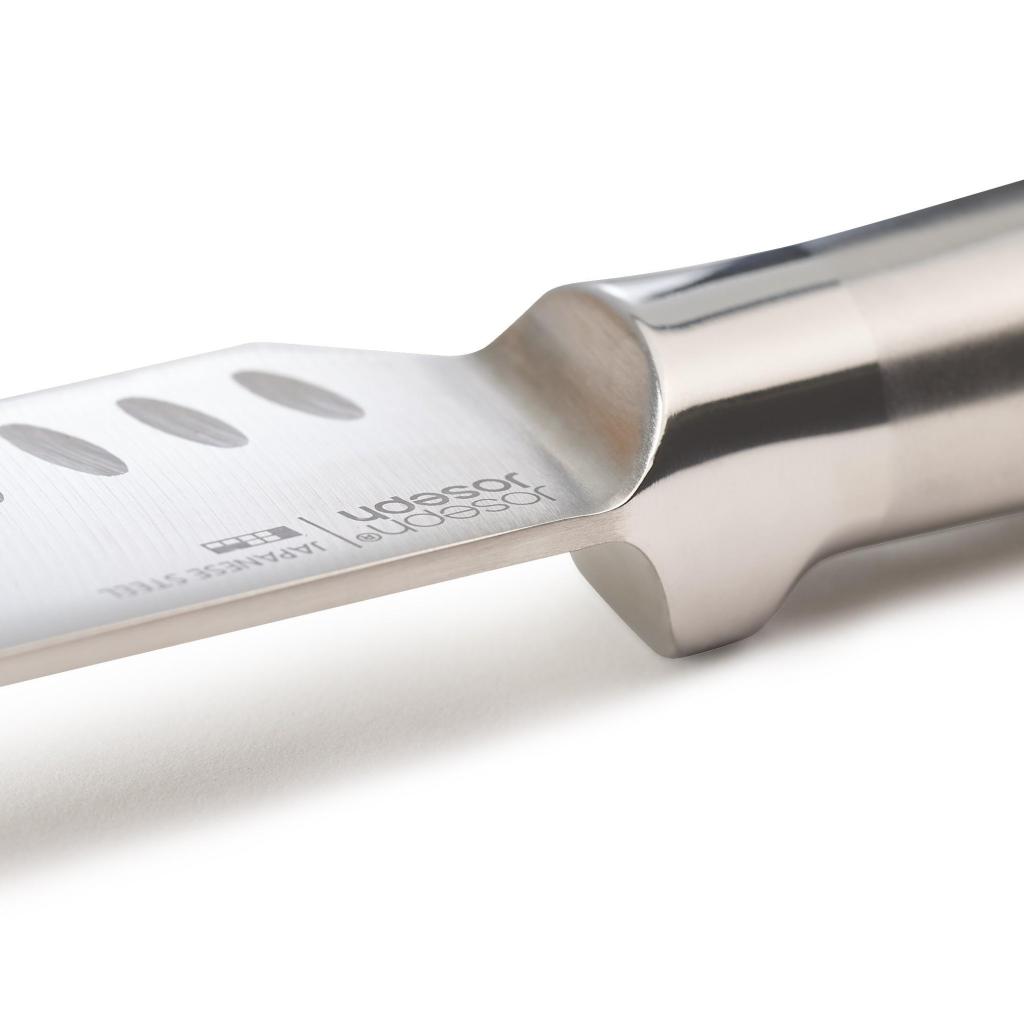 - Ergonomicky tvarované celokovové rukojeti zajišťují pevný a stabilní úchop, díky němuž je práce s nožem pohodlná a bezpečná i při delším krájení.