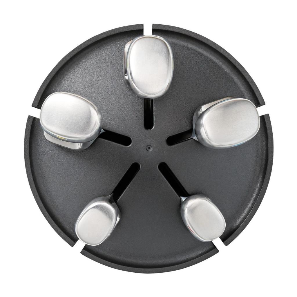 - Otočný stojan z nerezové oceli umožňuje snadný přístup ke všem nožům z libovolného směru, takže při práci nemusíte blok zvedat ani přesouvat po pracovní desce.