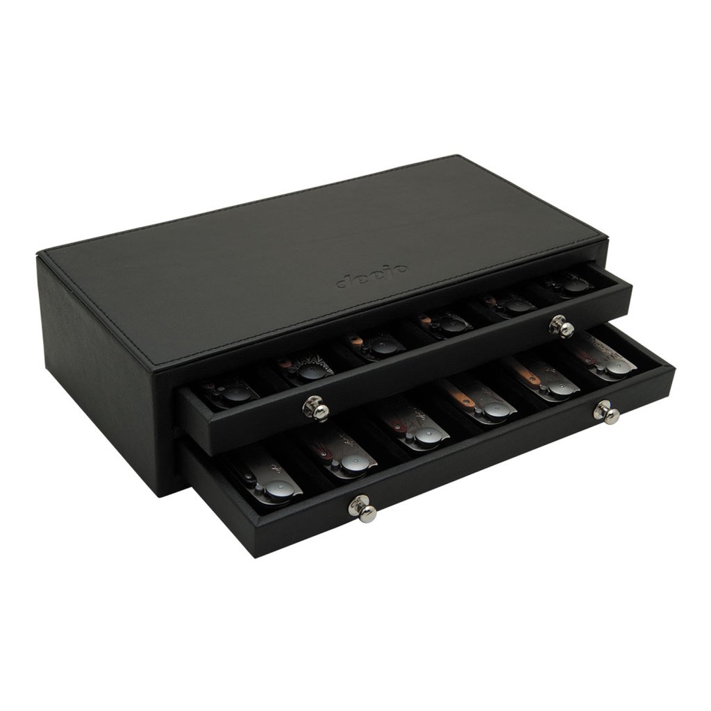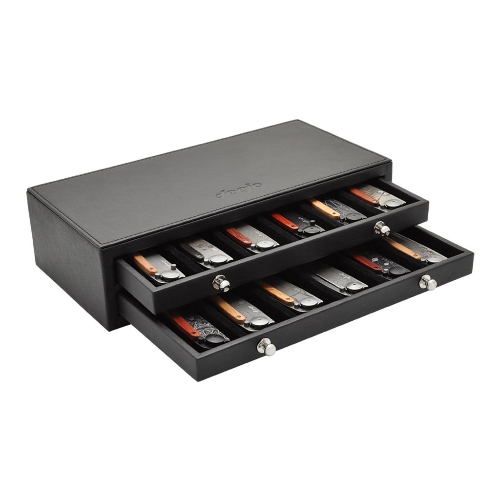 Sběratelský box na uložení až 12 ks kapesních nožů deejo, potěší každého, kdo hodlá svoji sbírku stylových nožů rozšířit. Box na míru představuje ideální způsob, jak nože uložit s péčí pro další použití.