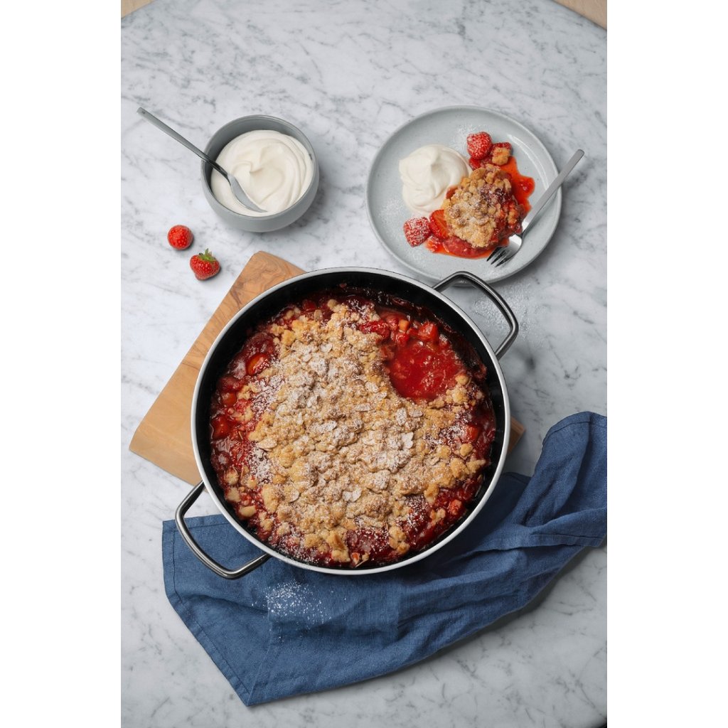 Nádobí FUSIONTEC německé společnosti WMF je vybaveno ocelovým jádrem, které zabezpečuje optimální vedení a udržování tepla. Povrchový minerální materiál zajišťuje komfort při každodenním použití a snadnou údržbu. Skleněná poklice ze žáruvzdorného skla je vhodná pro zapékání v troubě až do 180 °C.