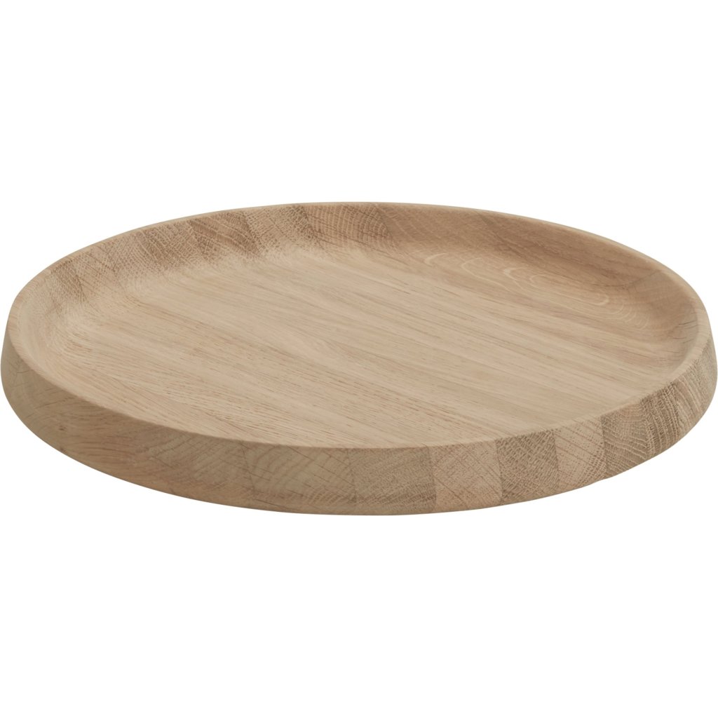 - kulatý servírovací tác z masivního dubového dřeva navržený ve skandinávském duchu jednoduchosti
