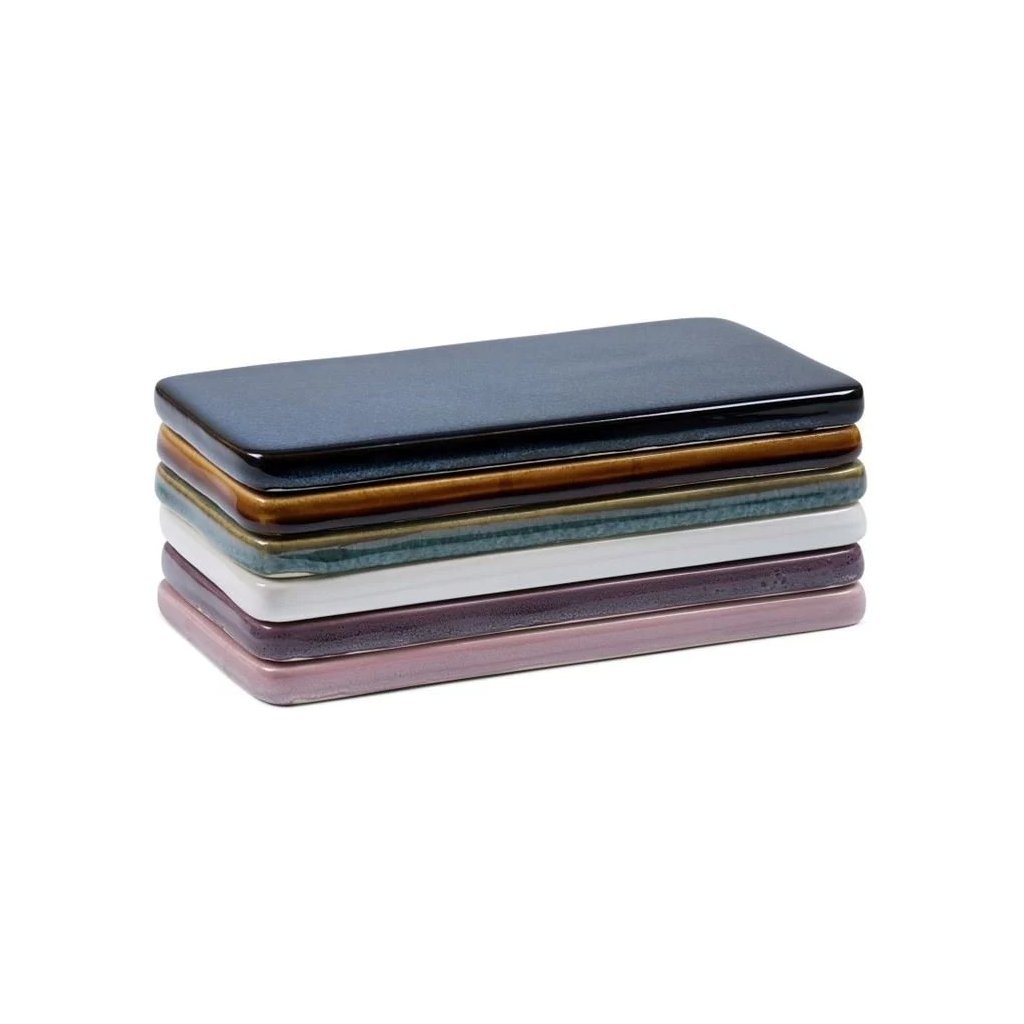 Servírovací tác / deska o rozměru 22 x 13 cm od společnosti Bitz je ideální pro servírování neobvyklých pokrmů jako jsou tapas či sushi, ale i sýrových talířů, klobás nebo koláčů. Je vyrobena z kameniny a disponuje ručně vytvářenou glazurou, takže každá deska je originál. Je vhodná do myčky na nádobí, mikrovlnky i trouby do 220°C a dá se skvěle kombinovat s ostatními výrobky Bitz.