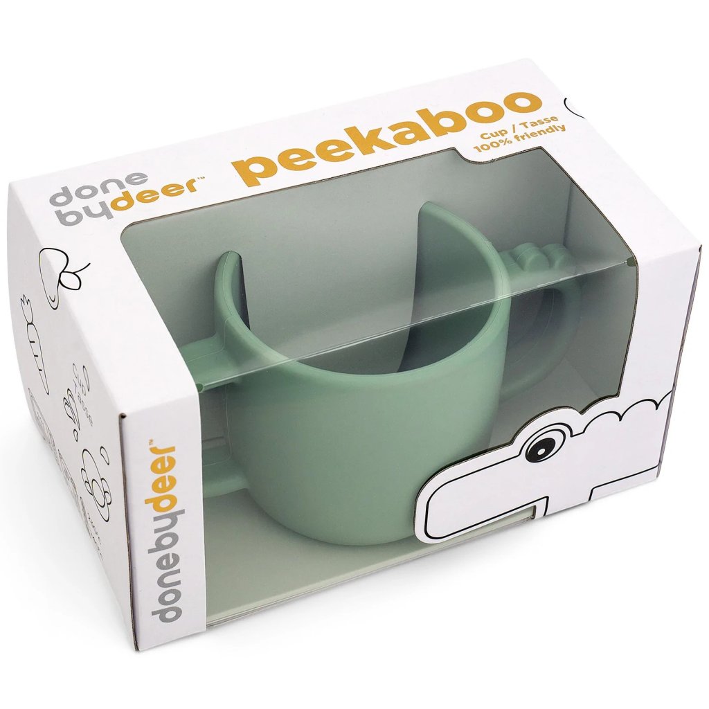 Dětský hrneček s oušky PEEKABOO CROCO 170 ml, zelená, silikon, Done by Deer