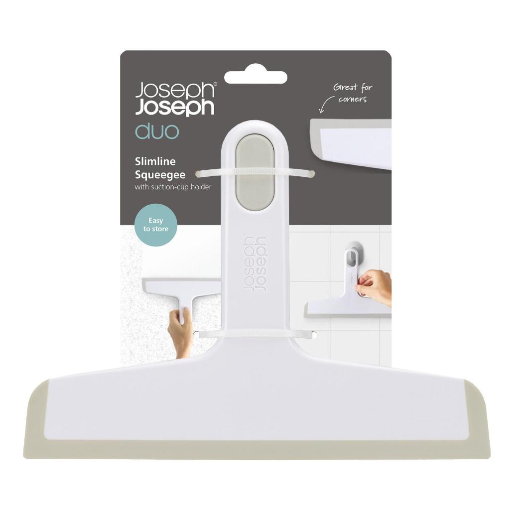 - Koupelnová stěrka Joseph Joseph DUO je praktickým pomocníkem pro rychlé a efektivní odstranění vody ze sprchových koutů, obkladů i zrcadel.