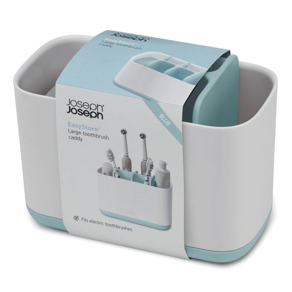 Kelímek na zubní kartáčky EASYSTORE, velký, bílá / modrá, Joseph Joseph