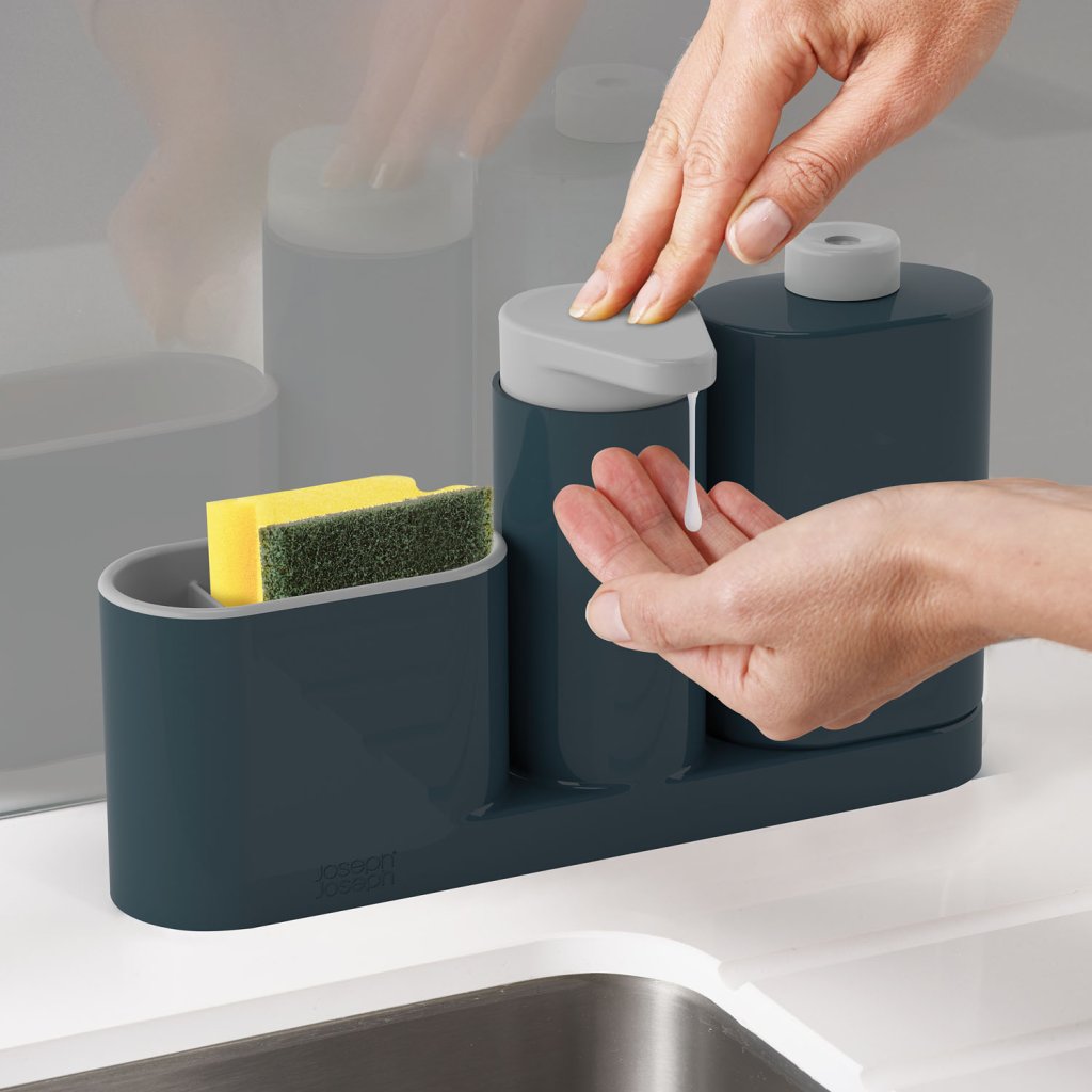Výzva pro designéry Joseph Joseph: designové skladování mýdla, saponátu a houbičky