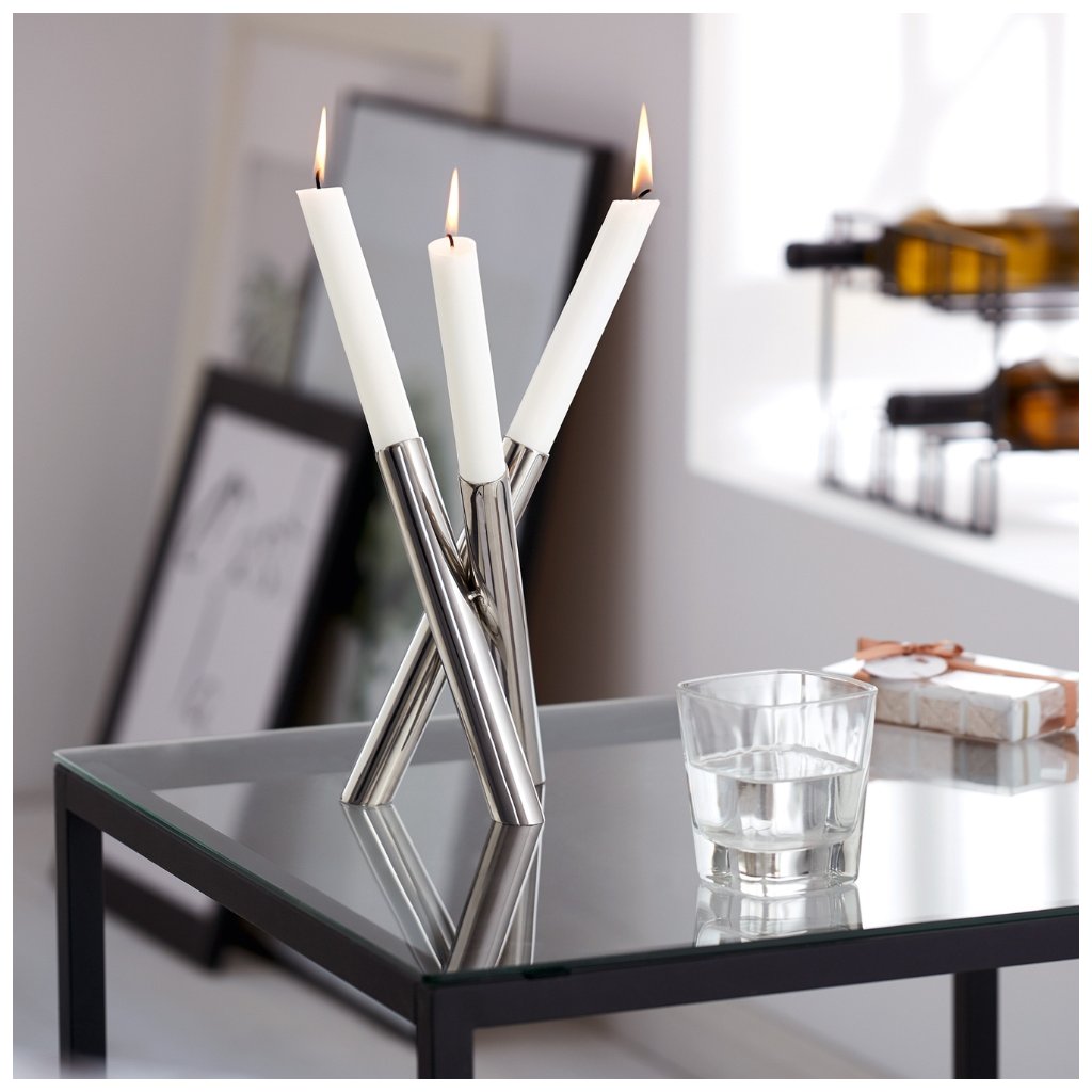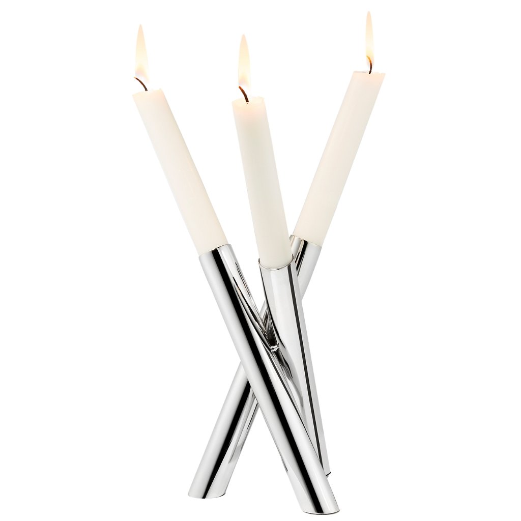 Svícen na kónickou svíčku PERPLEX 17,5 cm, na 3 svíčky, stříbrná, Philippi