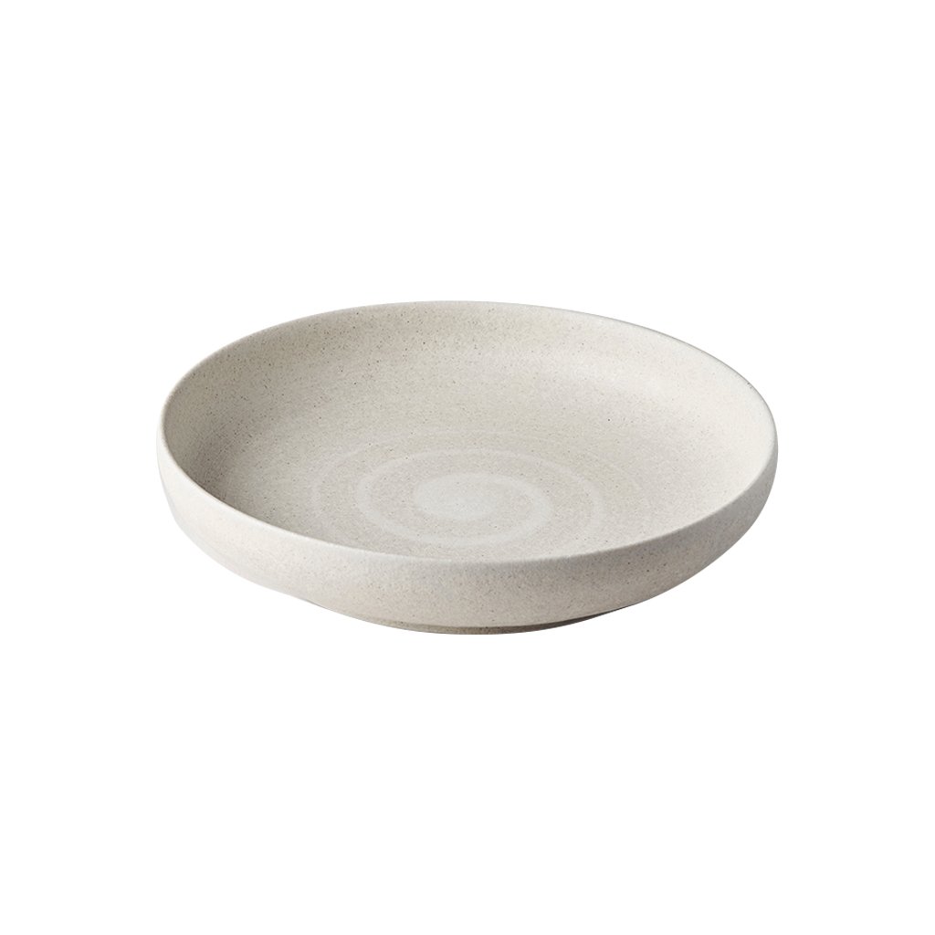 Nádobí z kolekce Recycled se vyznačuje kombinací pískové a bílé barvy s jasně zřetelným motivem spirály. Povrch nádobí je matný.