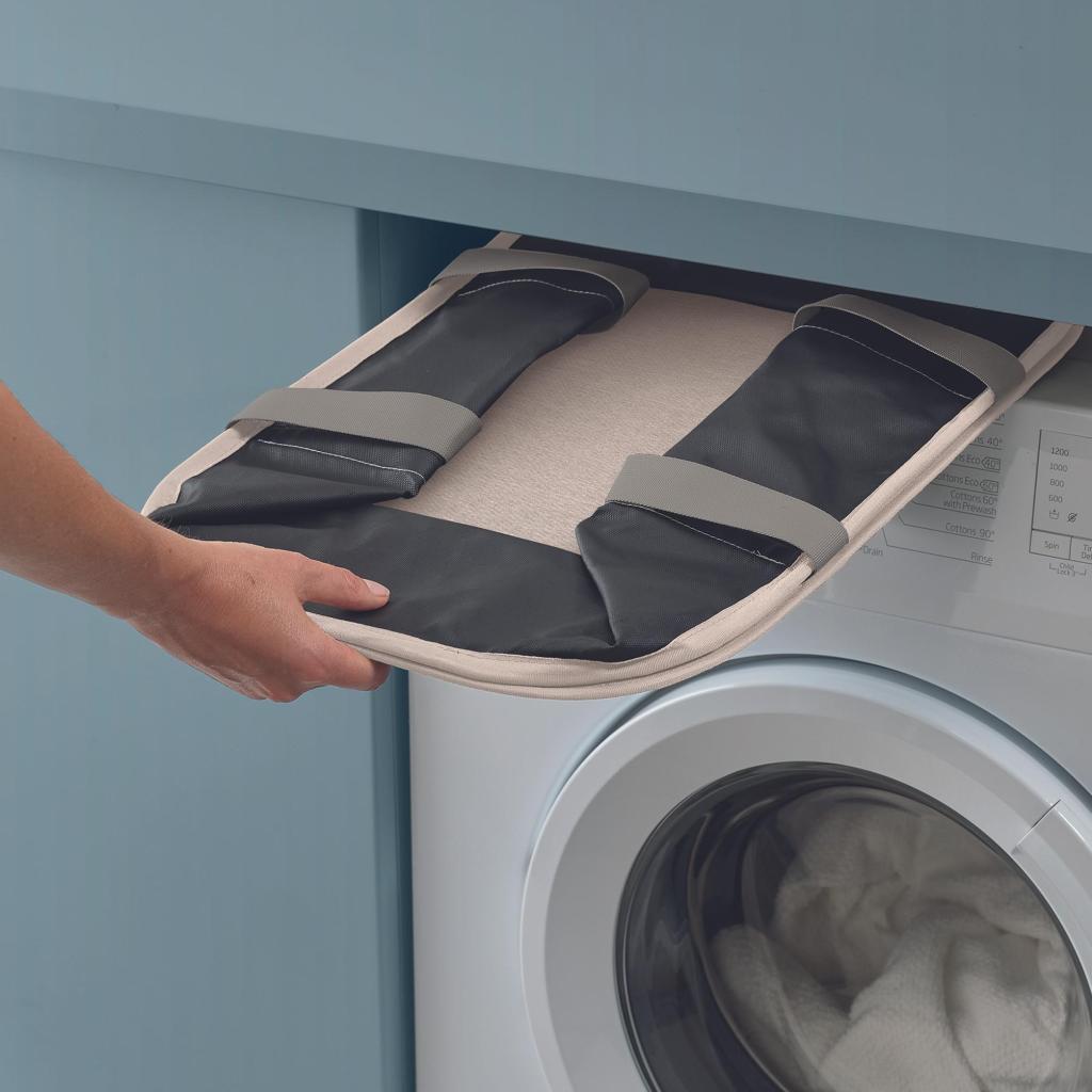 - Díky možnosti složení naplocho ji snadno zasunete do úzkého prostoru vedle pračky nebo uložíte do skříně, když ji právě nepoužíváte.