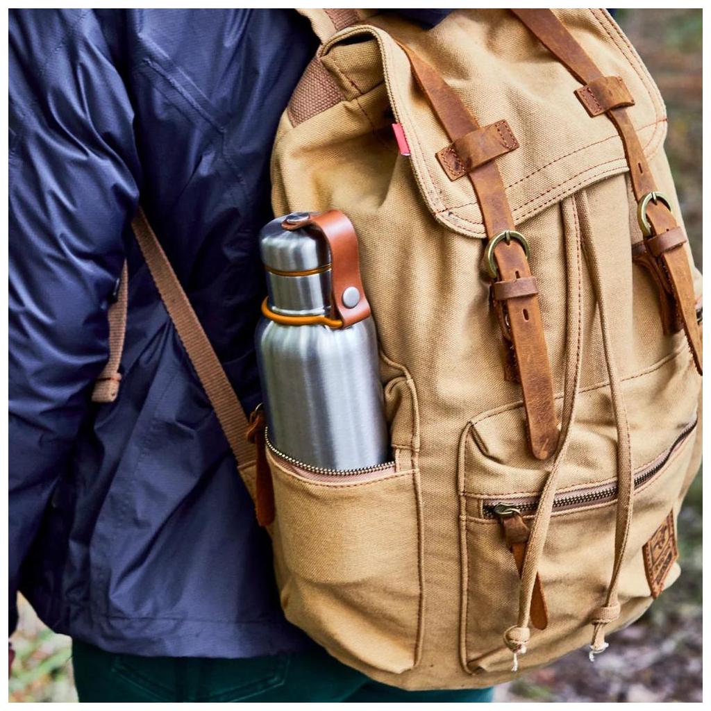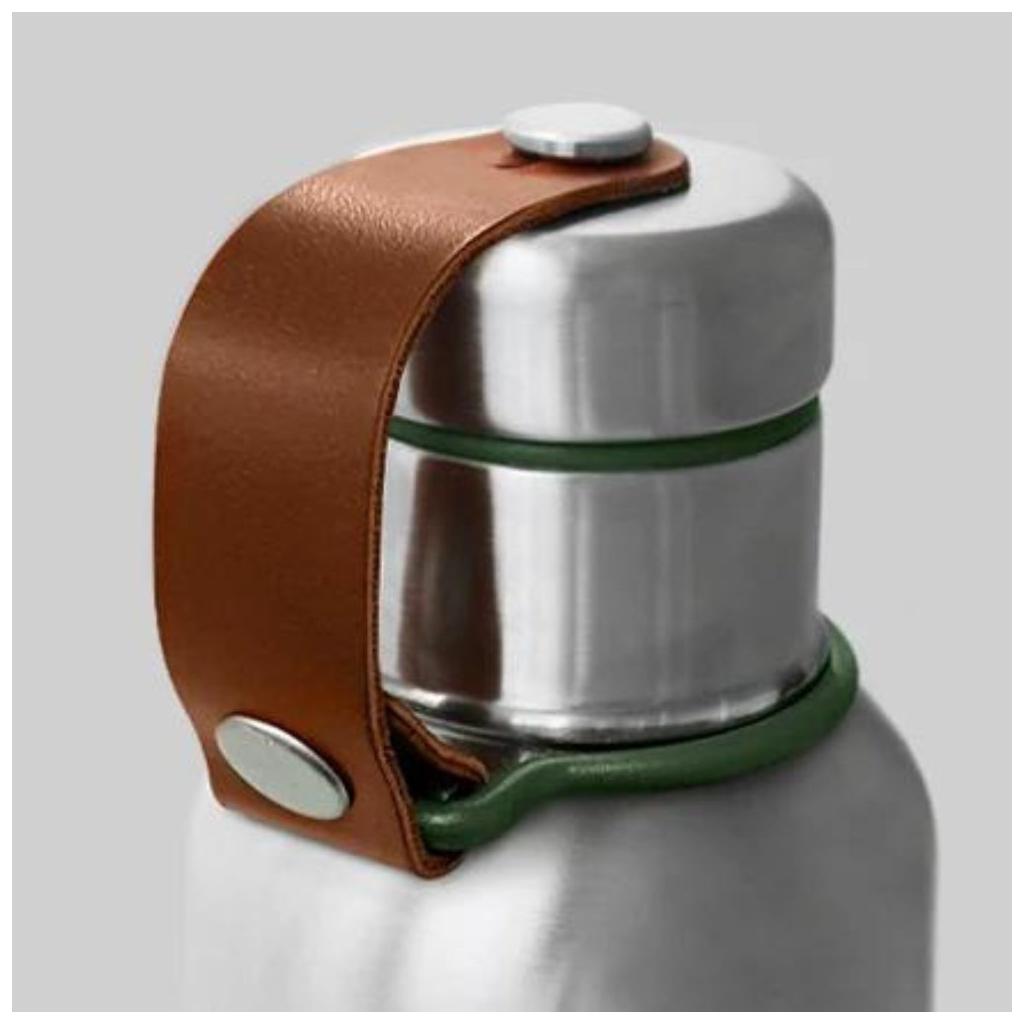 - stylový pásek z umělé kůže drží víčko a slouží i jako úchyt