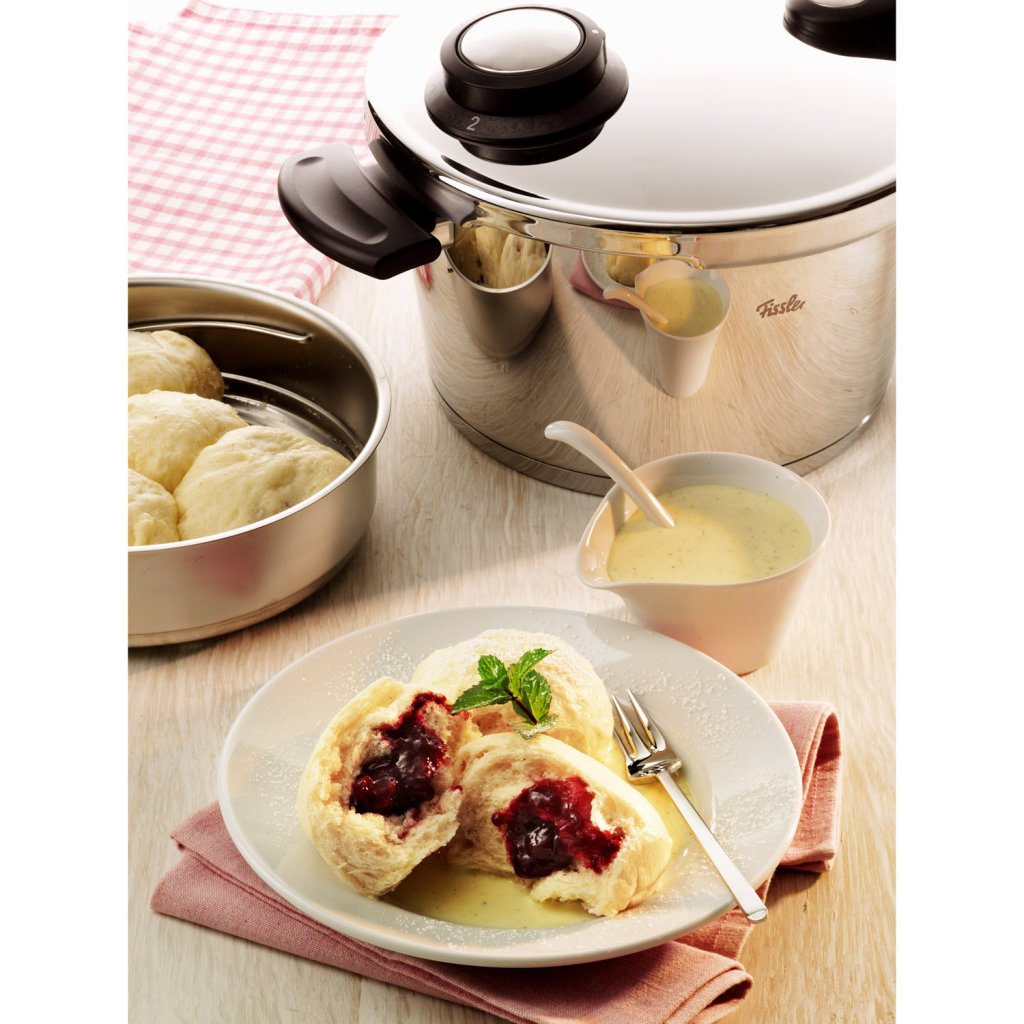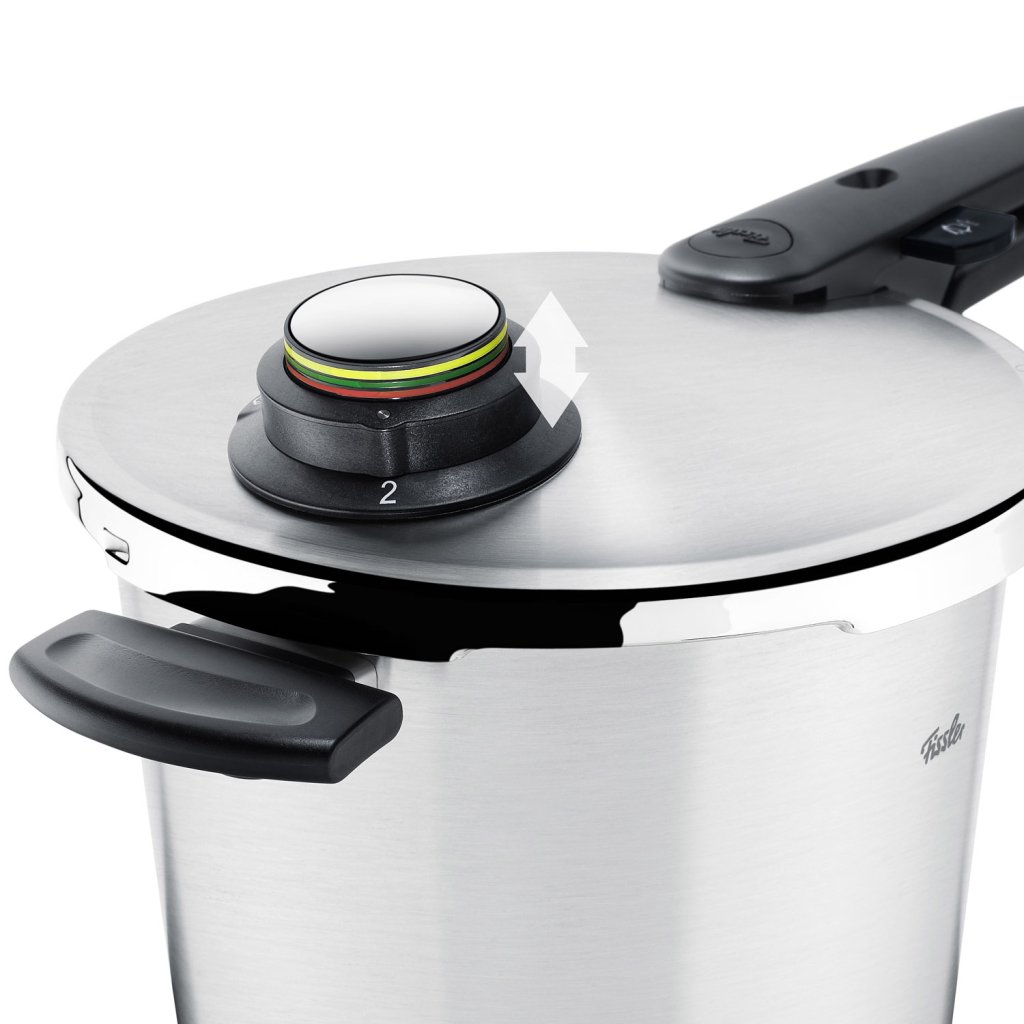 Vitavit® premium – tlakový hrnec s bezpečnou rukojetí. Není lepší způsob jak se rychle a zdravě stravovat než vařit v tlakovém hrnci. Doba těžkopádných neskladných papiňáků je již naštěstí pryč. Hrnce Fissler jsou nejen krásné, ale i maximálně bezpečné a praktické. Řada vitavit® premium je garancí snadné manipulace. Problém většiny tlakových hrnců spočívá právě v široké rukojeti, kterou je často problém pevně uchopit. Smyčková rukojeť hrnců premium je vhodná i pro menší ženskou ruku, její unikátní tvar s otvorem zabrání vyklouznutí hrnce.