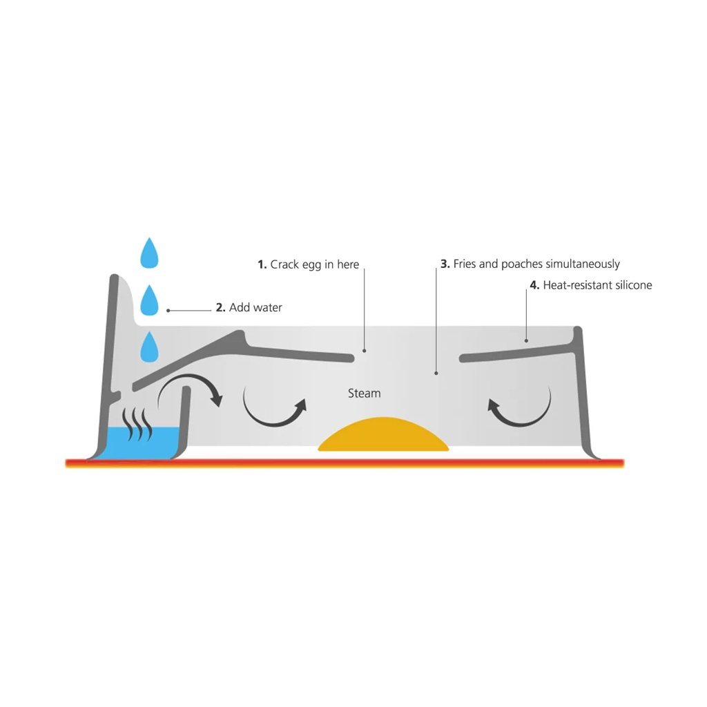Nový a zdravější způsob přípravy vajec - JOSEPH JOSEPH Froach Pods. Kombinuje princip smažení s metodou přípravy pošírovaných (ztracených) vajec. Se snadným užitím Froach Pods ušetříte 95 % oleje potřebného k běžnému smažení. Princip užití Froach Pods je velmi jednoduchý. Silikonový kroužek má uvnitř malou misku na několik lžiček vody. Jakmile se voda při přípravě zahřeje, změní se v páru, která cirkuluje a vaří vejce. Mezitím se spodní část vejce na pánvi běžným způsobem smaží, ale díky vlhkosti páry se k pánvi nepřichytává.