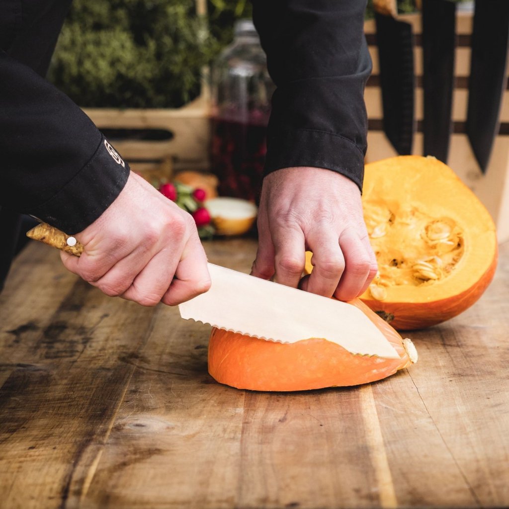 - všestranný nůž s vroubkovaným ostřím, ideální pro potraviny s tvrdou kůrkou nebo slupkou