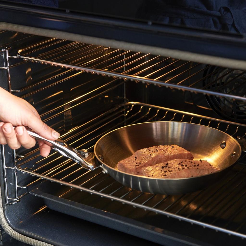- díky třívrstvé konstrukci z nerezové oceli a hliníkového jádra poskytuje výjimečně rovnoměrné rozložení tepla bez přehřívání