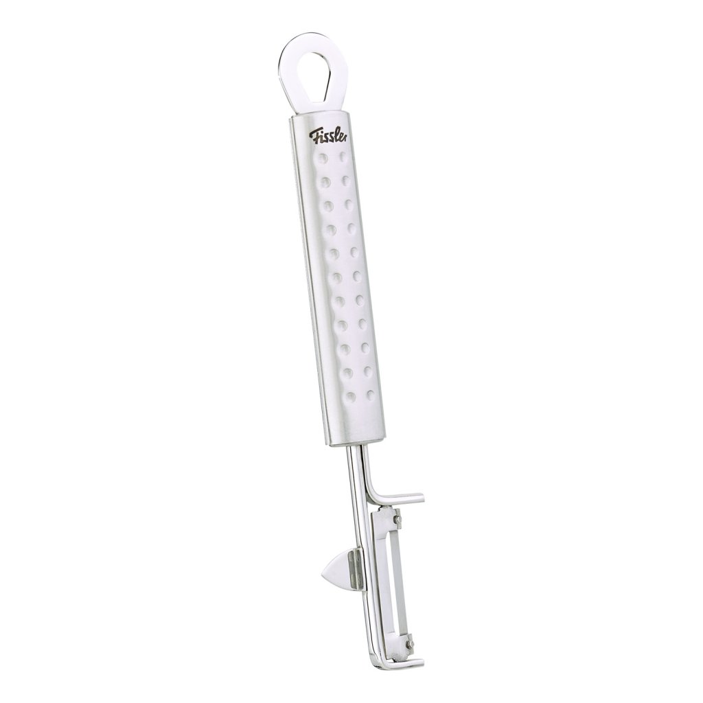 Výkyvná škrabka na zeleninu je určena k čištění a oškrabávání. Odstraníte s snadno tenkou slupku. Škrabka je vhodná na brambory, mrkev, okurky a chřest. Můžete ji také využít k ozdobnému plátkování cukety nebo okurky, kdy se škrabkou odkrajují tenké stuhy zeleniny.